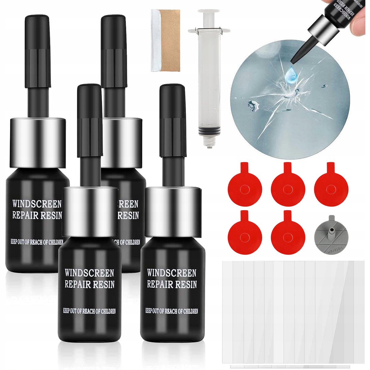 Набор для ремонта лобового стекла автомобиля без токсичных химикатов. Не требует сложных инструментов. Он настолько прост в использовании, что предотвращает повторное распространение повреждения.