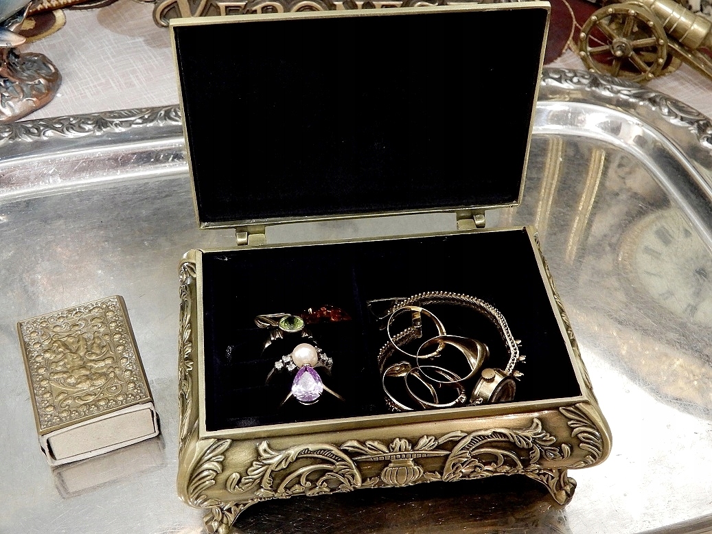 Приглашаю Вас приобрести внушительную, довольно большую шкатулку, она изготовлена из цинкового сплава, покрыта латунью, цвета старого золота.