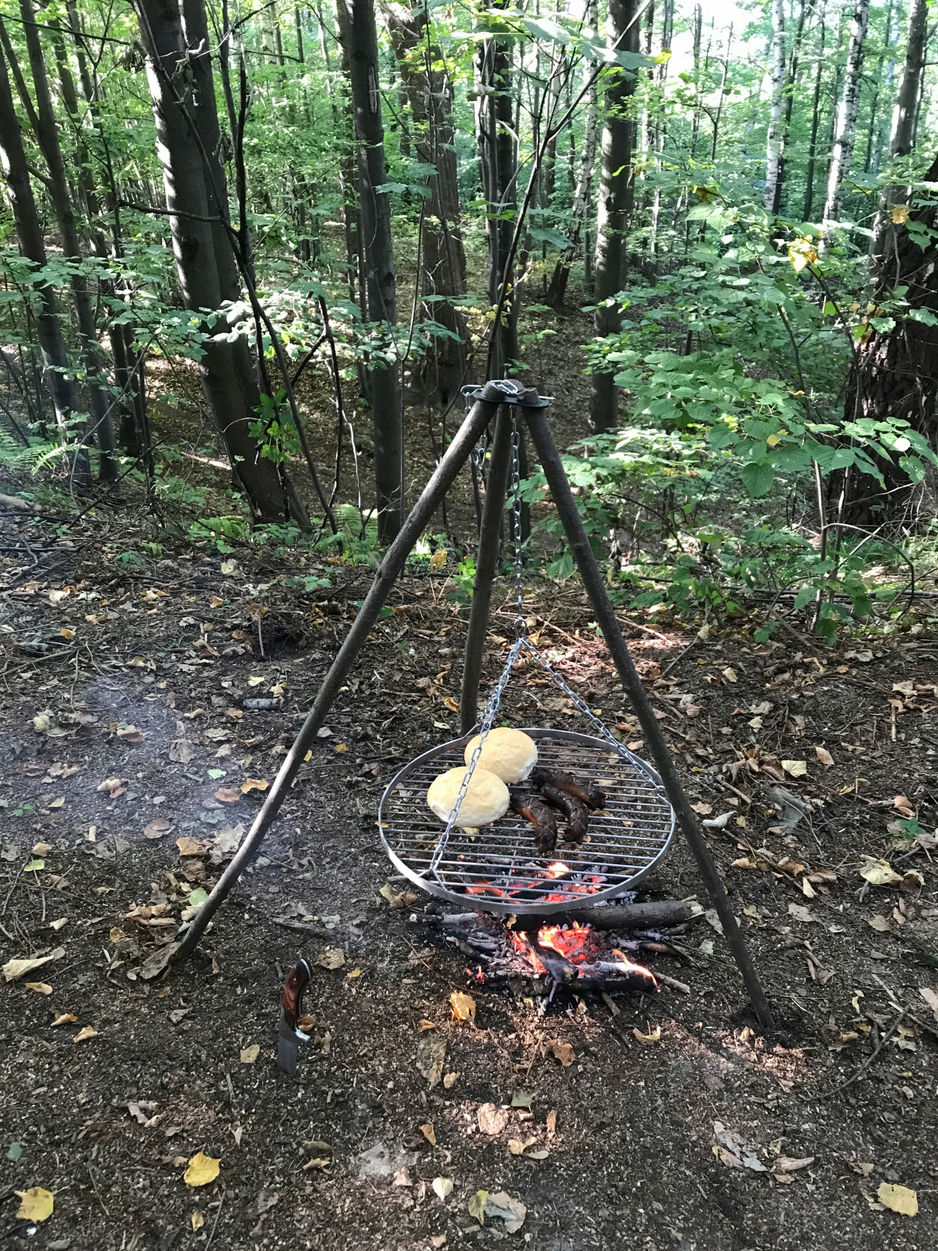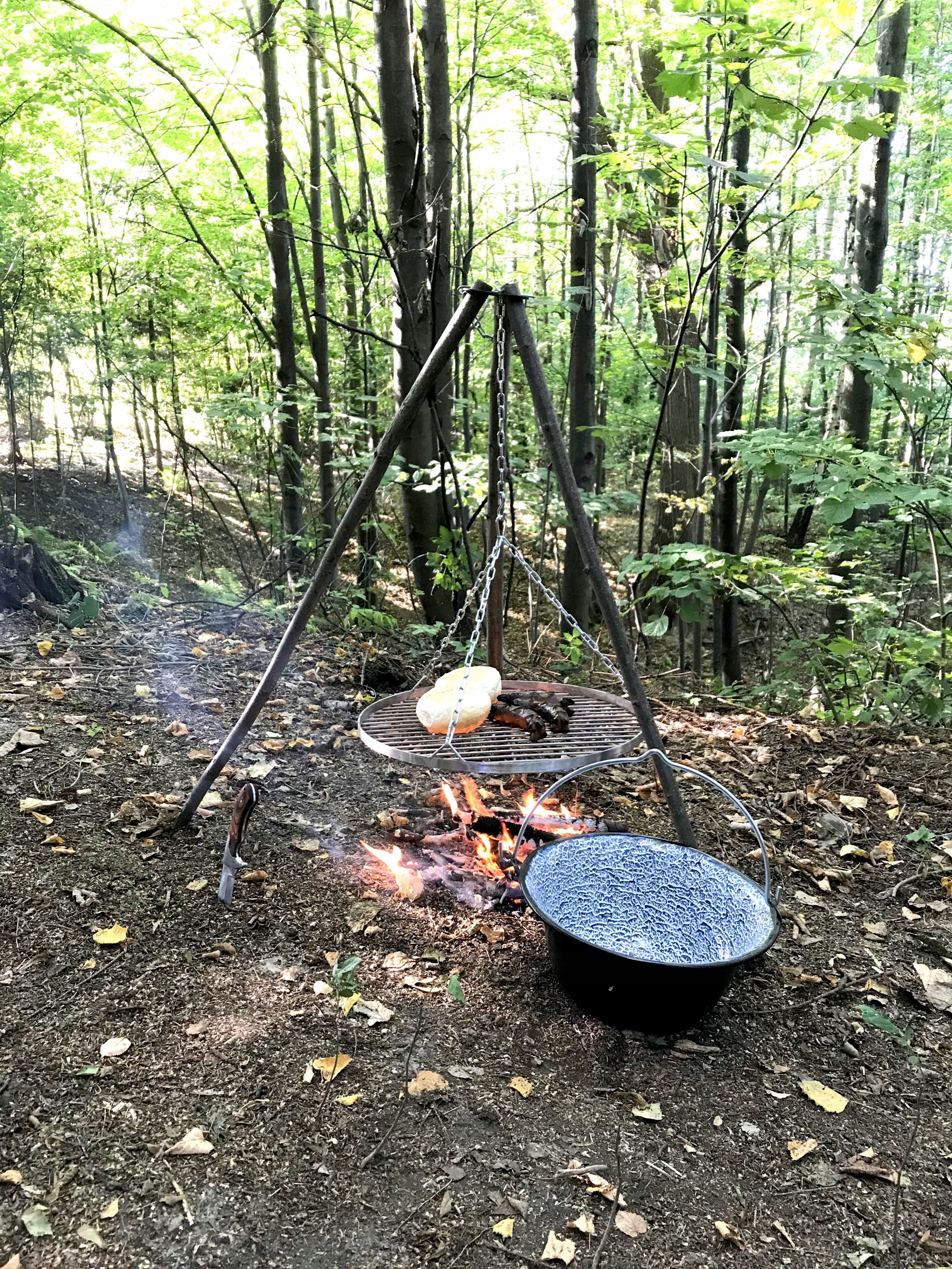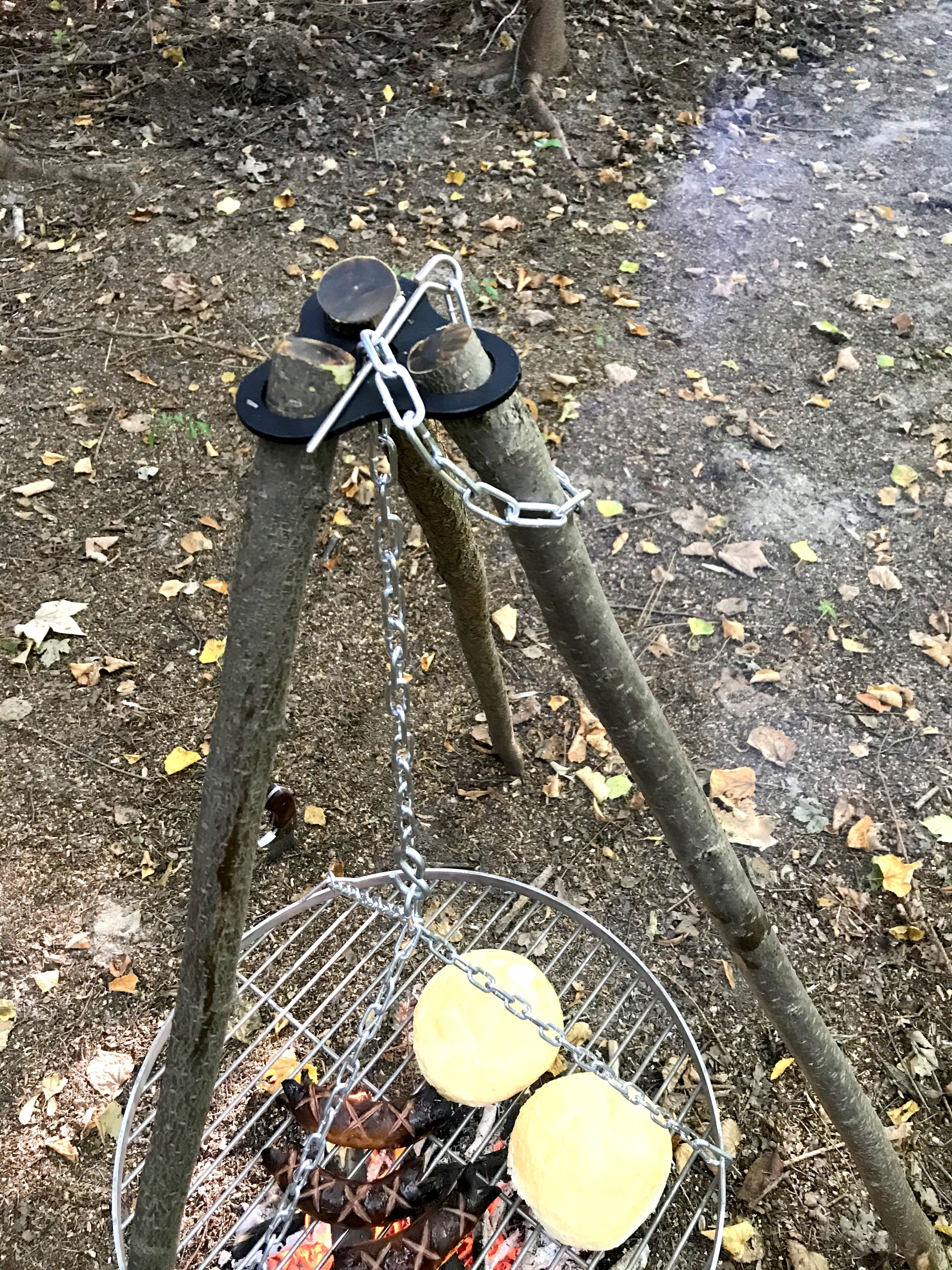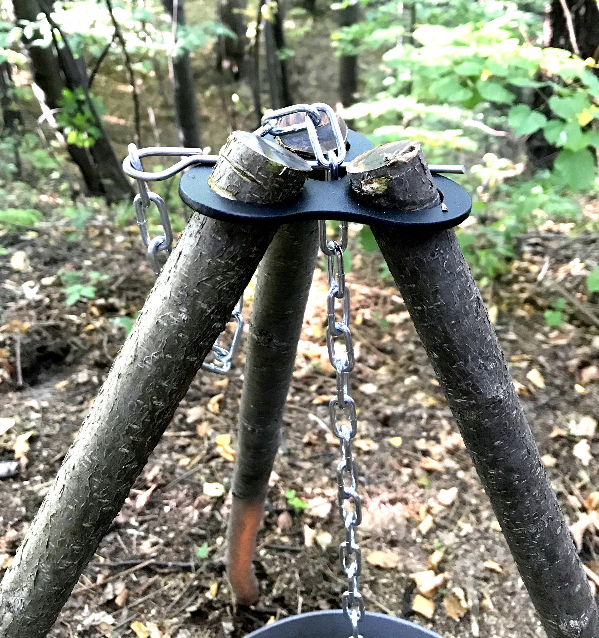 Используя этот гаджет, вы можете построить штатив над костром, используя имеющиеся в лесу палки, ветки.