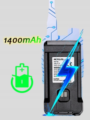 Двусторонняя радиосвязь с возможностью зарядки; Большой аккумулятор емкостью 1400 мАч; до 3 дней в режиме ожидания; нормальное время использования превышает 8 часов; автоматическое энергосбережение; отвечает повседневным потребностям.