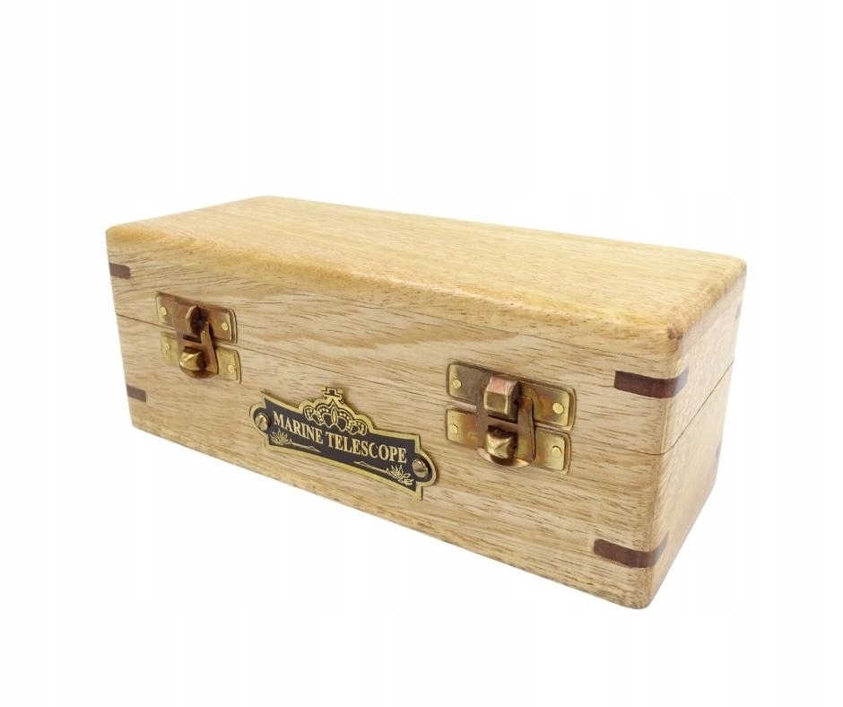Телескоп упакован в деревянную коробку, похожую на сундук с сокровищами.