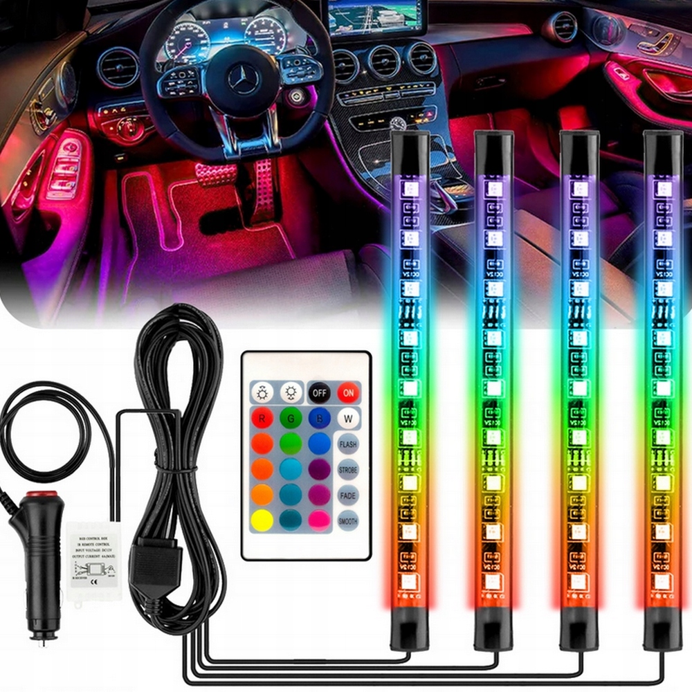 RGB LED ПІДСВІТКА САЛОНУ АВТОМОБІЛЯ 4x LED СМУЖКИ