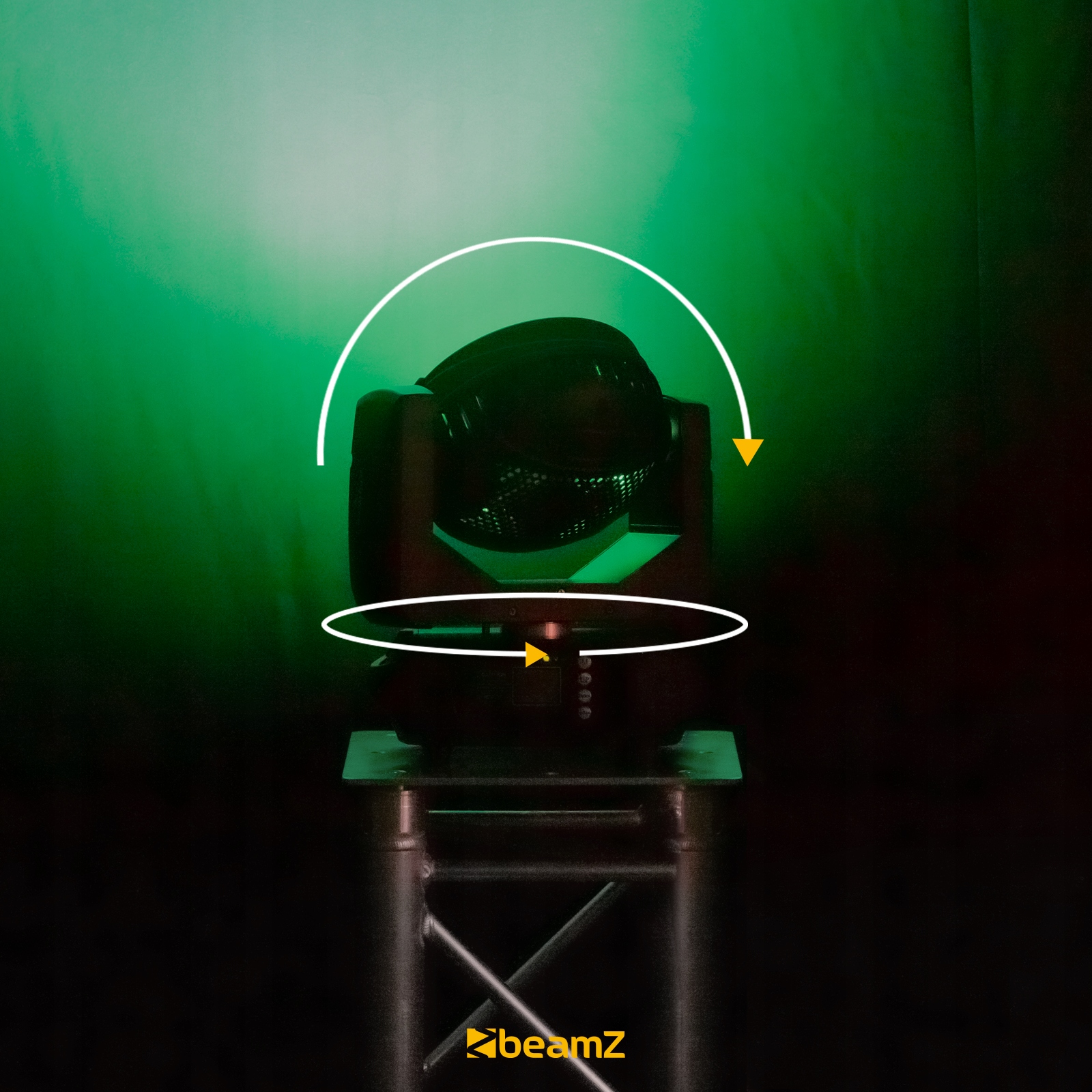 В дополнение к трем индивидуально управляемым кольцам, которые позволяют создавать красивые эффекты, FUZE1910 также оснащен стробоскопическим эффектом, который может мигать до 21 раза в секунду. Подвижная головка имеет большой диапазон вращения 540° и наклона 180°, что обеспечивает большой пространственный диапазон.