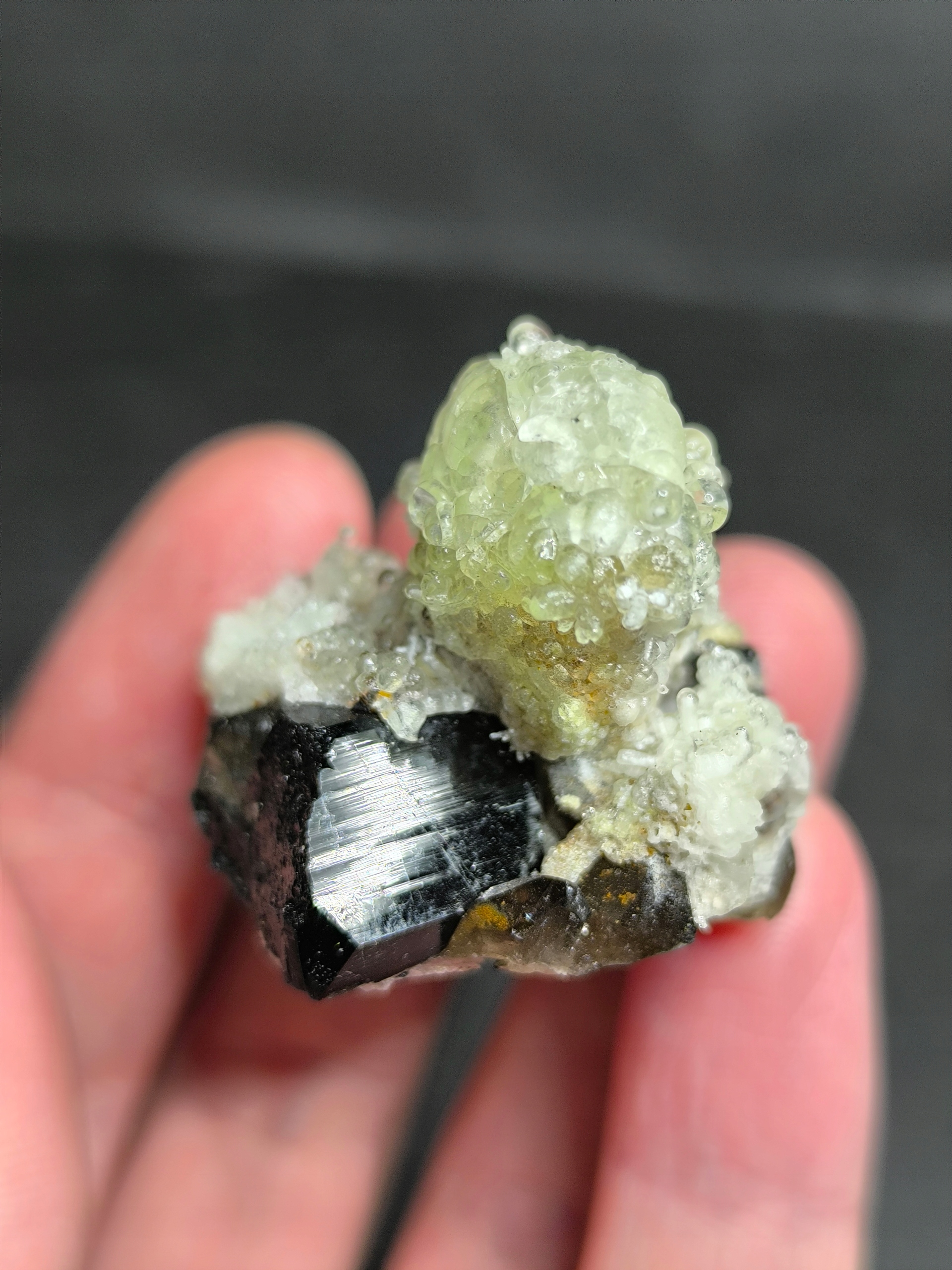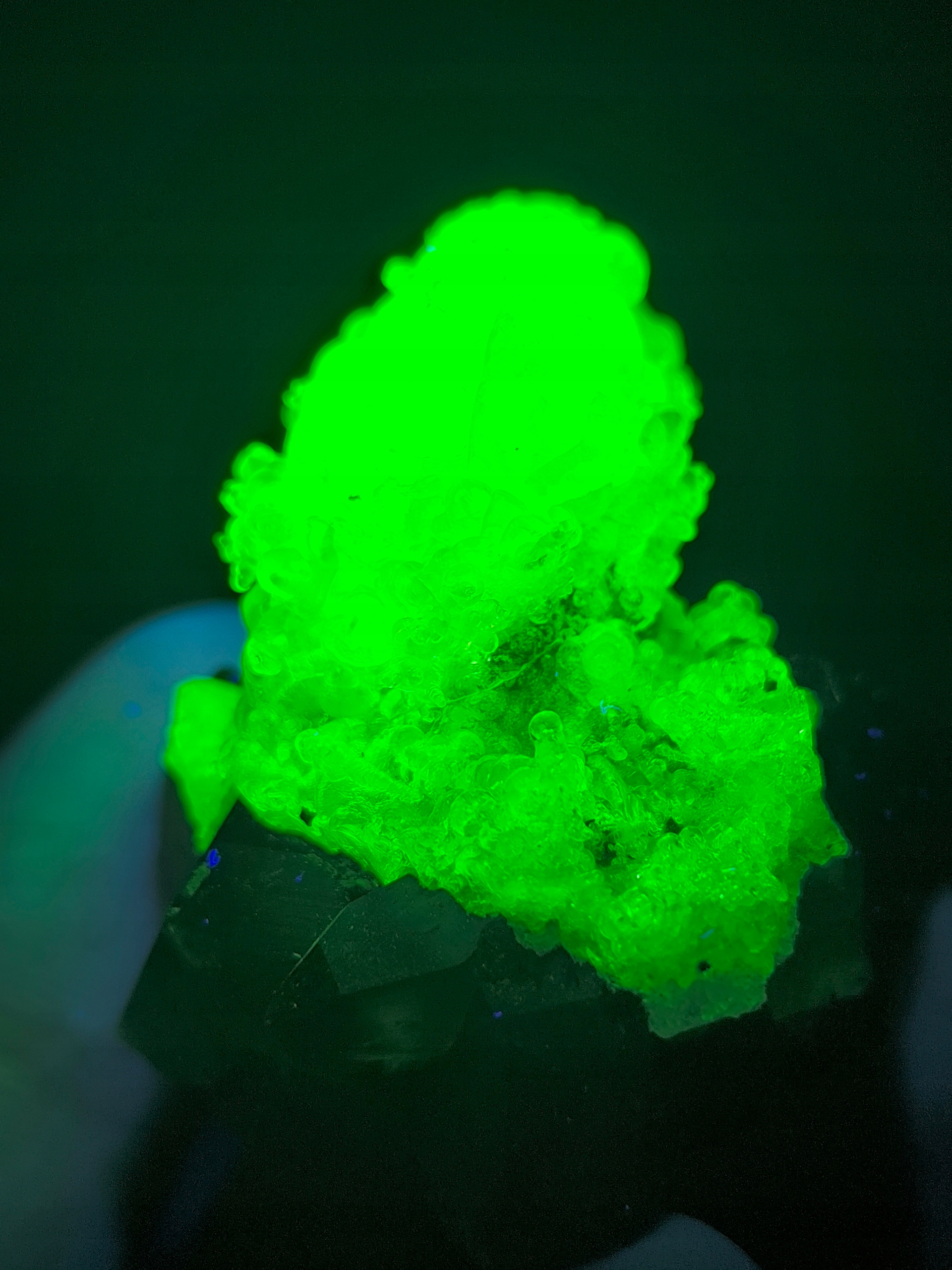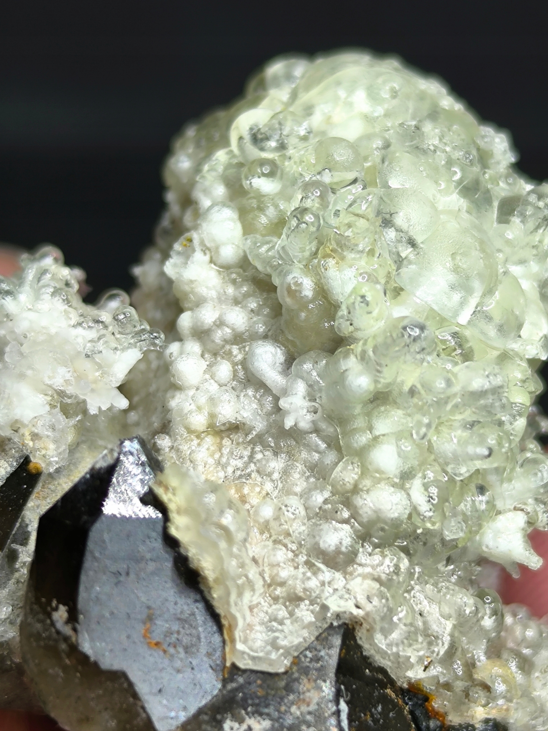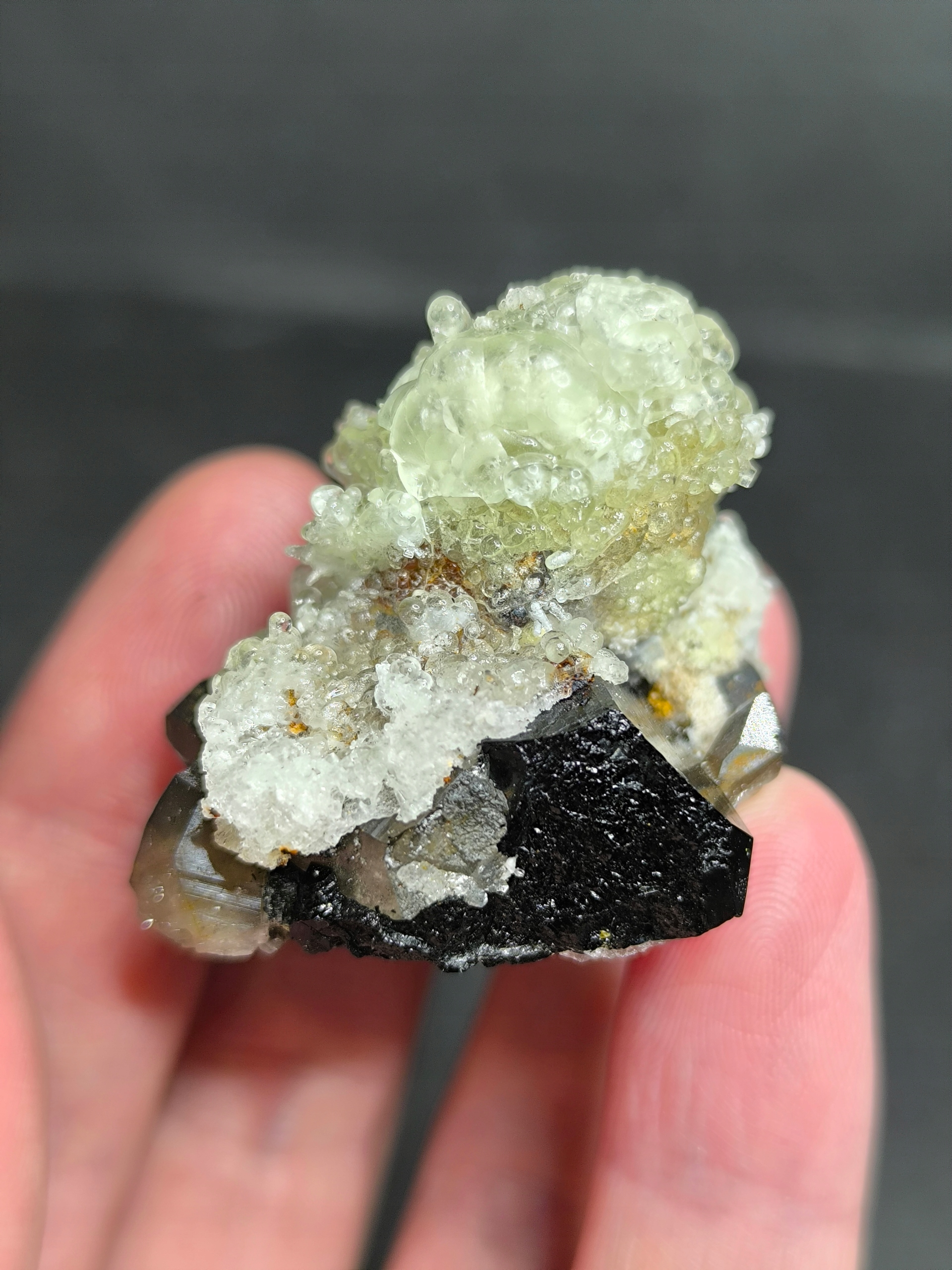 Редкий! Hialit, Tourmaline, дымовой кварц, очень реактивный в ультрафиолеторе! Намибия