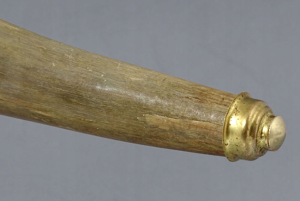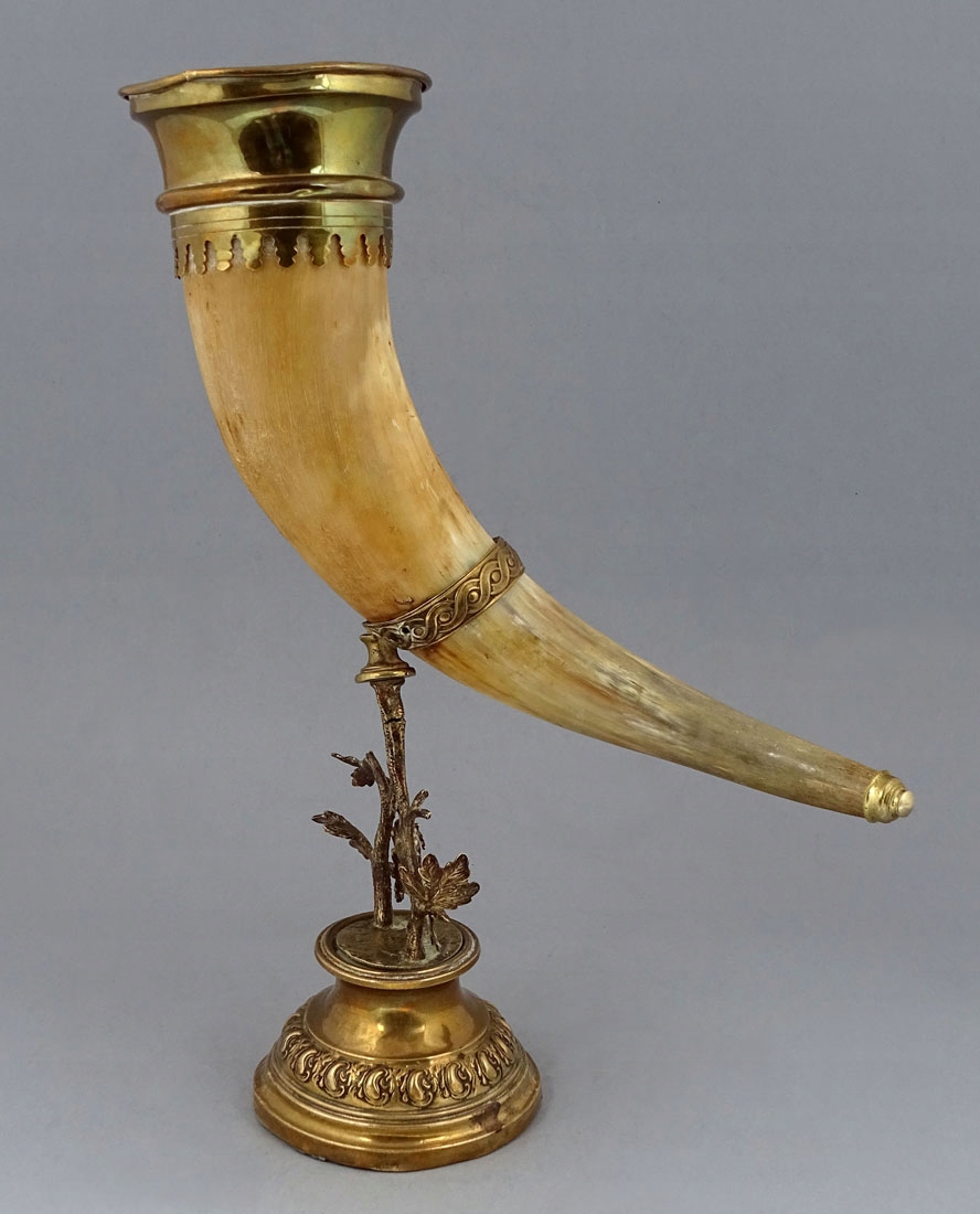 Баволи помещен в гравированный узкий духовой оркестр, который поддерживается ветвями с листьями, между которыми видно фигура оленя. Основание с круглой основой, свернутыми, выгравированными и отполированными. Угол в более узкой части, украшенной нажатой кнопкой, и широким отполированным наложением.