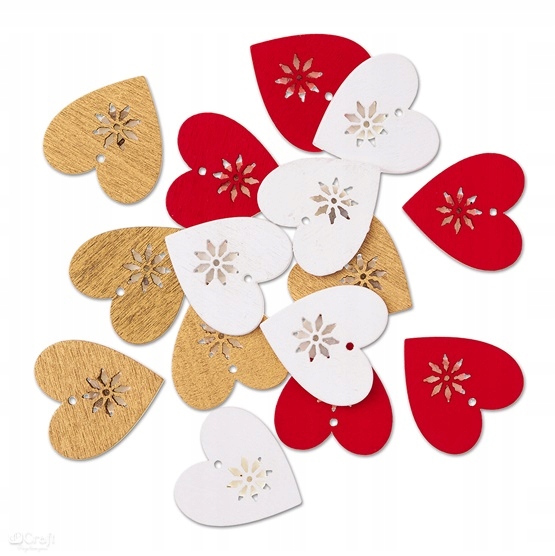 DPDN-201 САМОКЛЕЯЩИЕСЯ ДЕРЕВЯННЫЕ СЕРДЦЕ, 16 ШТ, БЕЛЫЙ, ЗОЛОТОЙ, КРАСНЫЙ
