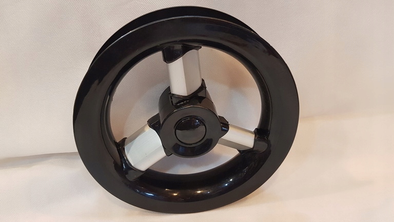 Обод можно установить на любую ось Fi 10 мм с фрезой на оси, как на фото ниже. Сборка осуществляется путем надевания колеса на ось, нажатия фиксатора колеса (кнопка посередине колеса), нажатия колеса дальше с нажатой кнопкой, отпускания кнопки и перемещения всего колеса назад (как будто мы хотел снять с оси), затем защёлкнул колесо на ось - готово!