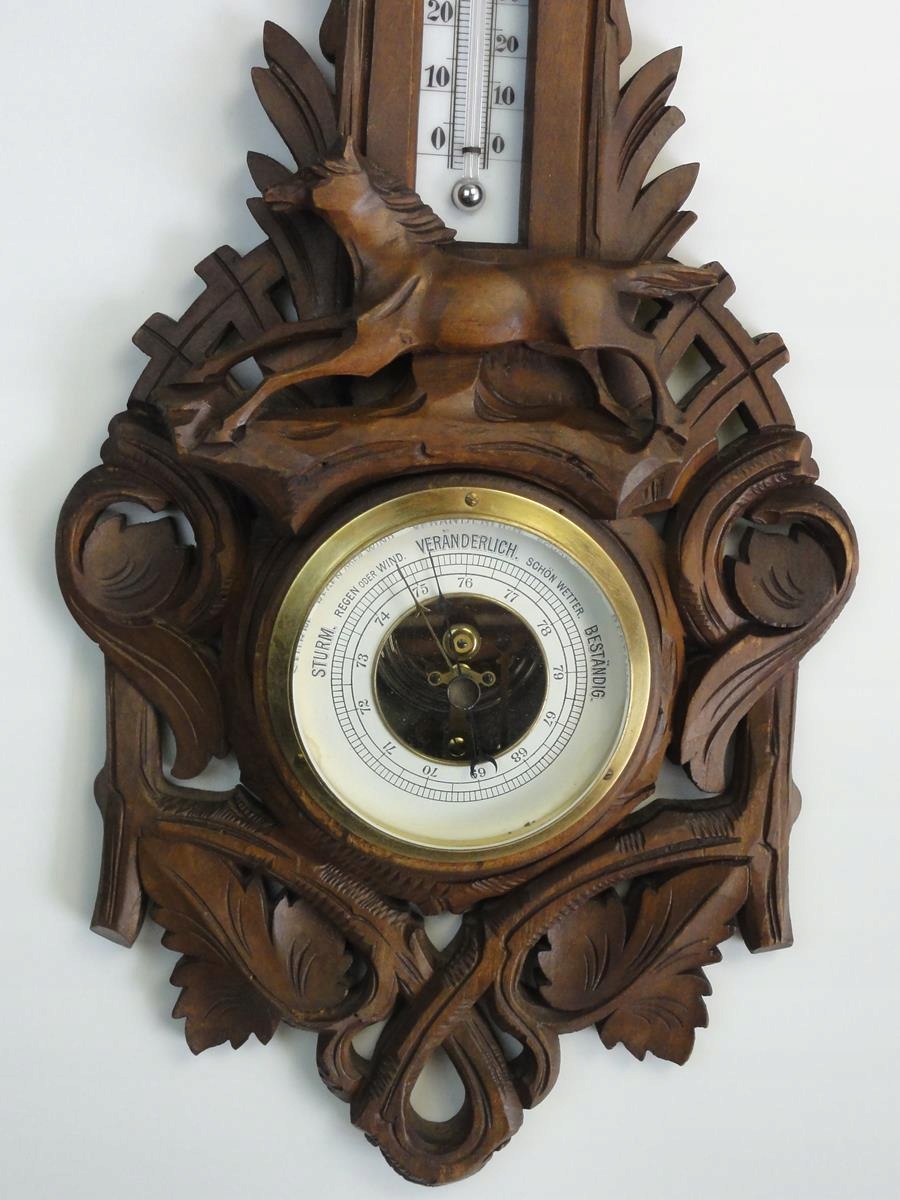 РЕЗНОЙ БАРОМЕТР С ТЕРМОМЕТРОМ - ЛОШАДЬ