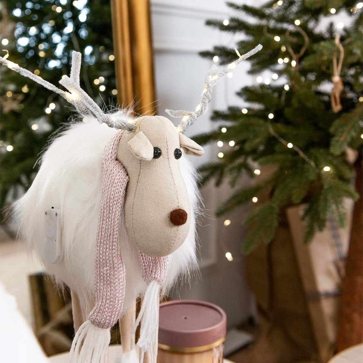 рога оленей были дополнительно переплетены с микро -светодиодами в цвете теплого цвета . Отличный это будет выглядеть особенно после темного