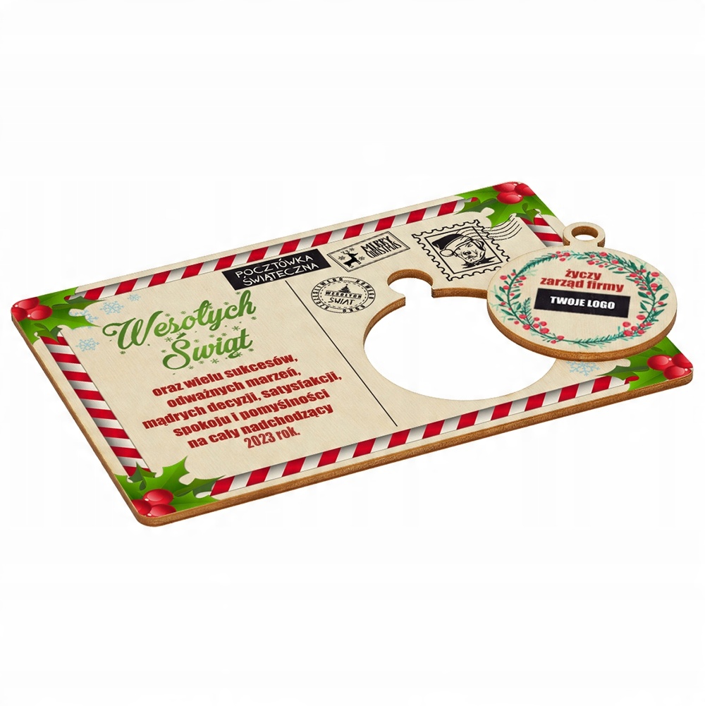 деревянная рождественская открытка на Рождество со съемным украшением + собственная посвящение
