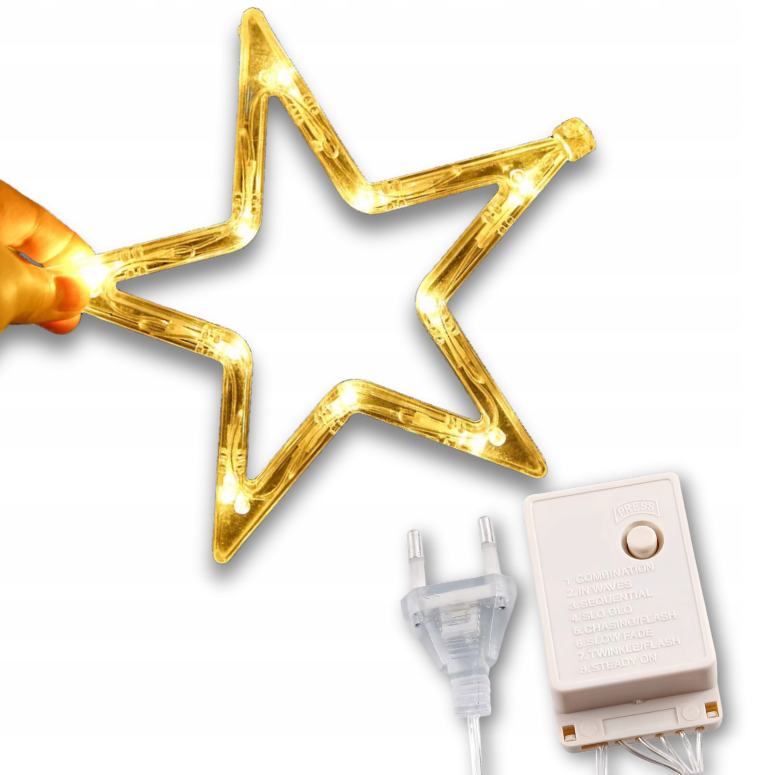 РІЗДВЯНА ШТОРА 120 LED ТЕПЛІ РІЗДВЯНІ ЗІРКИ НА ВІКНО 3М