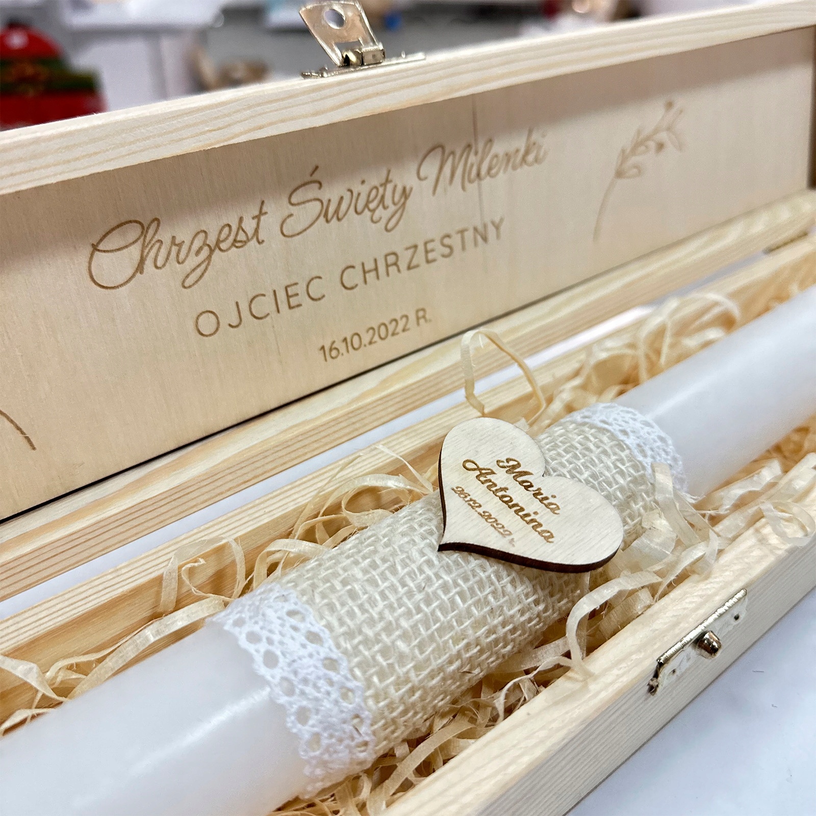 КРЕЩЕННАЯ СВЕЧА В ДЕРЕВЯННОЙ КОРОБКЕ С ГРАВИРОВКОЙ