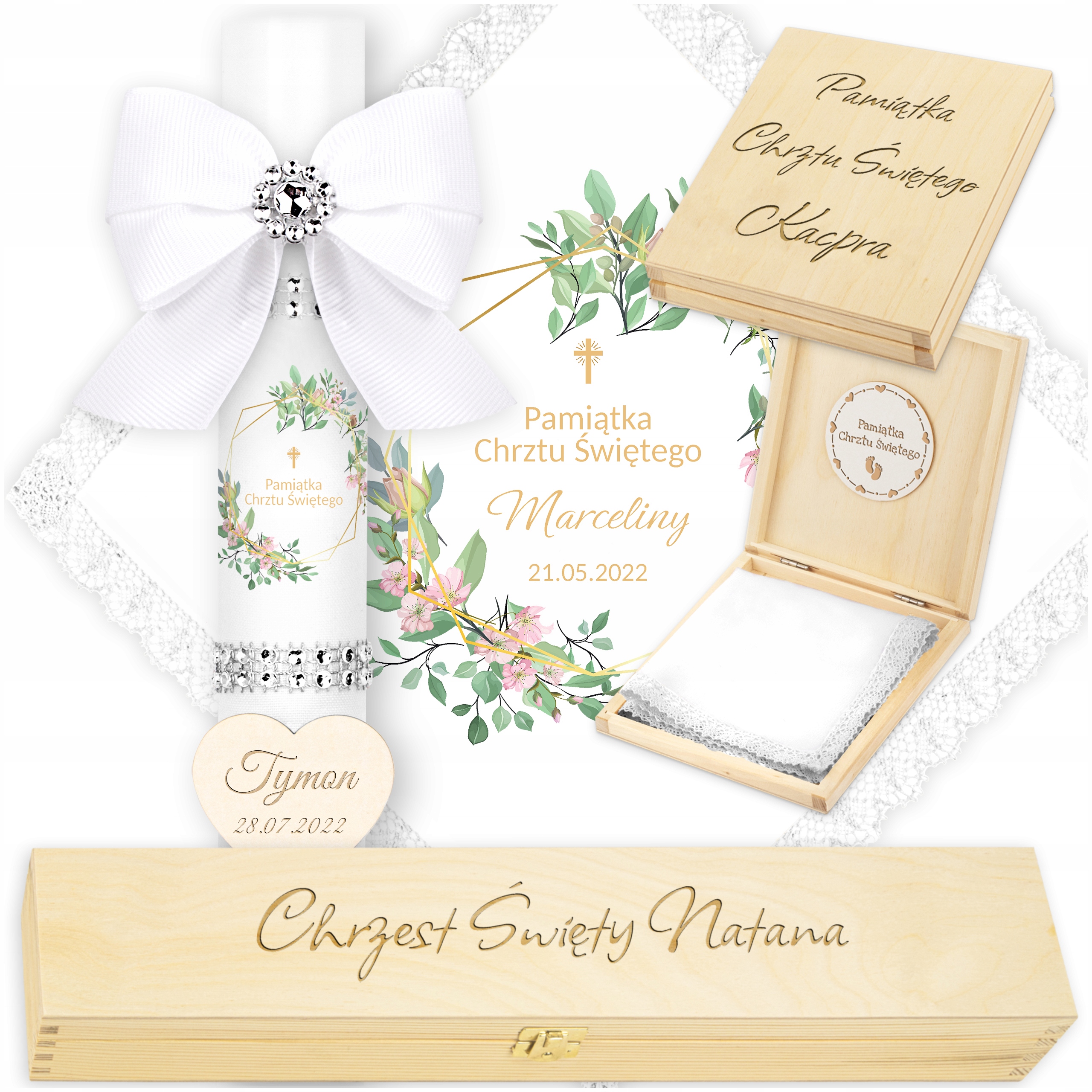 КРЕСТИТЕЛЬНЫЙ НАБОР, ОБЕРТЫВАНИЕ И СВЕЧА + 2 КОРОБКИ