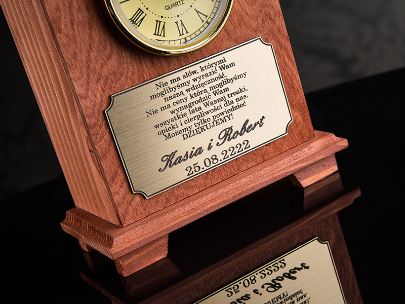 Есть ли у вас проблемы с принятием решения, какой подарок выбрать для благодаря вашим родителям или годовщину свадьбы ? Собираетесь ли вы на семейную вечеринку и не знаете, что купить юбилату / имениннику? Купите эту статуэтку сейчас. Это красивый деревянный комод с прямой гравировкой на специальной гравюрной ламинате. Это наша оригинальная идея для подарок для родителей или для любого другого случая. дополнительно окрашен и лакирован. в середине имеет настоящие часы (это не манекен) У получателя, который видит такой хорошо -сделанный подарок, безусловно, будет в восторге!