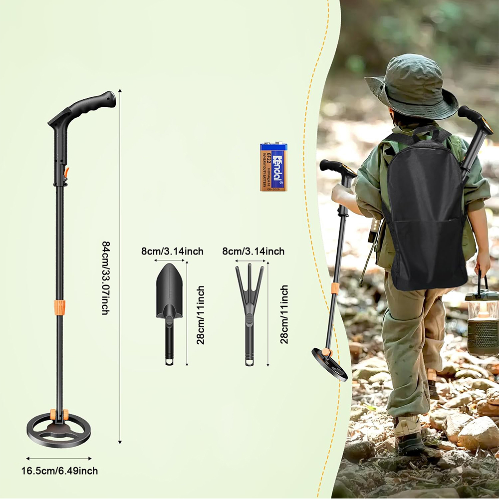 В наборе вы также получите детектор из легкого металла для детей, лопату и грабли. Это не только отличный выбор для путешествий, праздников, кемпингов и походов, но и отличного подарка на день рождения или Рождество. Наши металлоискатели изготовлены из безопасного пластика АБС. Пусть ваши дети наслаждаются поиском сокровищ на открытом воздухе с помощью нашего водонепроницаемого металлоискателя для детей