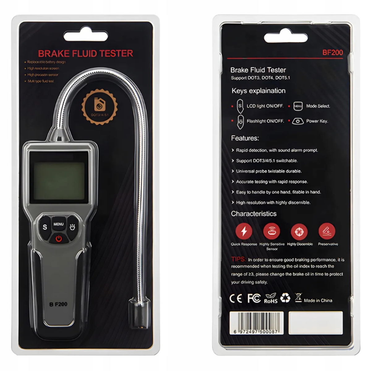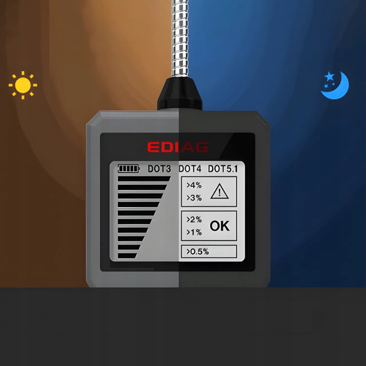 Цифровой тестер тормозной жидкости с зондом, b> является незаменимым инструментом для каждого драйвера и профессиональной услуги. Благодаря расширенным технологиям и четкому ЖК -дисплею, он позволяет быстро и точно проверять состояние тормозной жидкости всего за несколько секунд. Компактный размер и гибкий зонд обеспечивают удобство использования даже в жестких местах . Поддерживает популярные жидкости Dot 3, Dot 4 и Dot 5.1, что делает его универсальным и надежным диагностическим устройством.