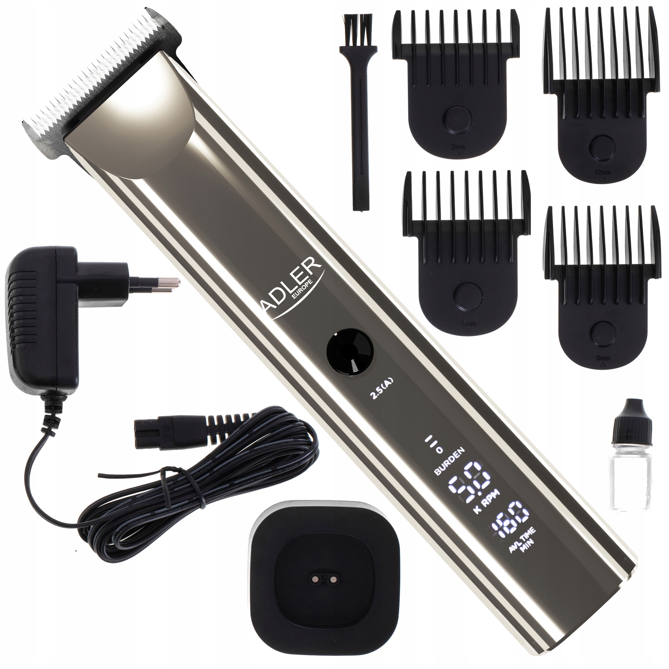 Беспроводная машинка для стрижки волос с ЖК-дисплеем, титановой головкой и керамическим лезвием Adler AD2834