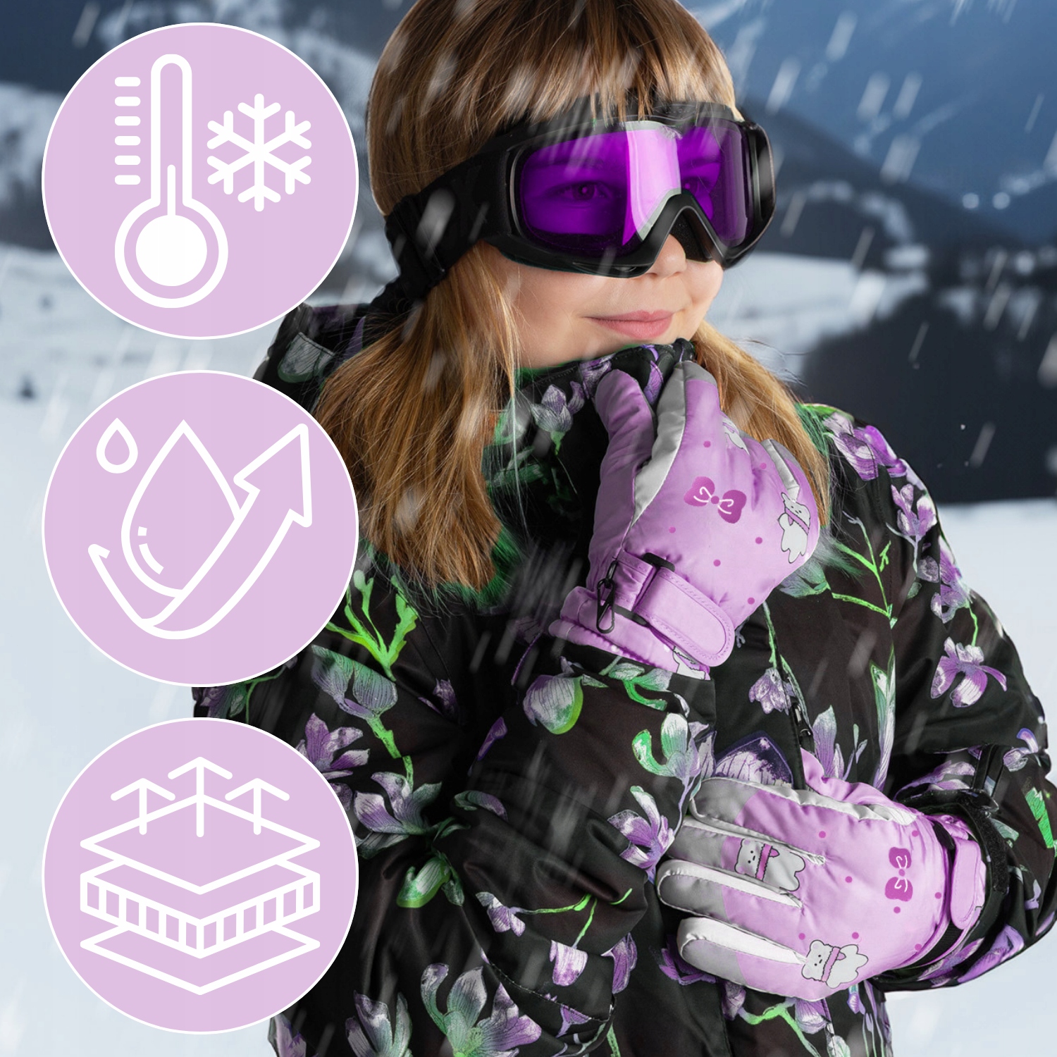RĘKAWICZKI ZIMOWE DZIECIĘCE RĘKAWICE NARCIARSKIE CIEPŁE GRUBE WODOODPORNE