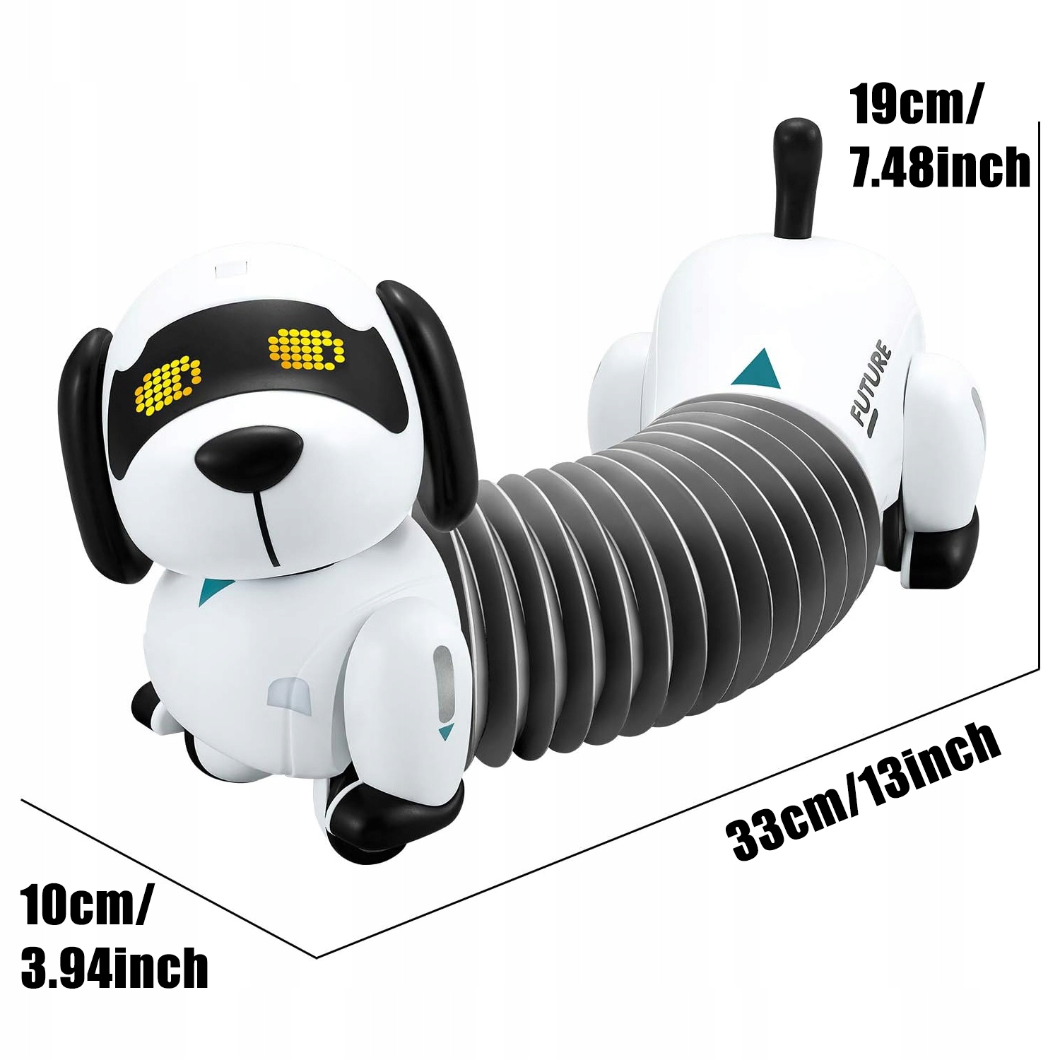 После нажатия кнопки «Следуй за мной» на пульте дистанционного управления, собака -робот обнаруживает вашу позицию и следует за вами на каждом шаге. Кроме того, вы также можете использовать пульт дистанционного управления или запрограммированную собаку для танца и петь, пусть ваш ребенок и робот чувствуют радость от музыки и танцевать вместе, ваш ребенок будет очень доволен маленьким другом!