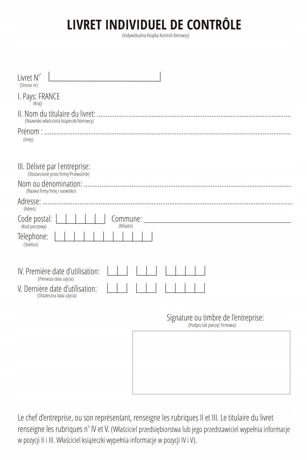 Рабочая книга водителя France LIC 2IN1 PL-FR