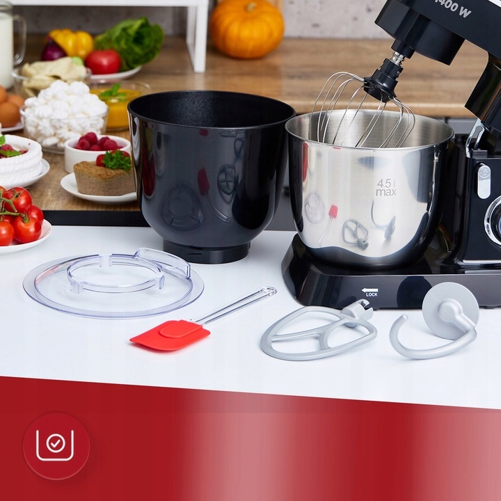 ✅ Высокая мощность MRK-25 h2> - ➡moc и производительность b>: Power 1400 Вт обеспечивает хорошую производительность и позволяет обрабатывать различные ингредиенты, от легких пирожных до более тяжелого хлебобулочного пирога.