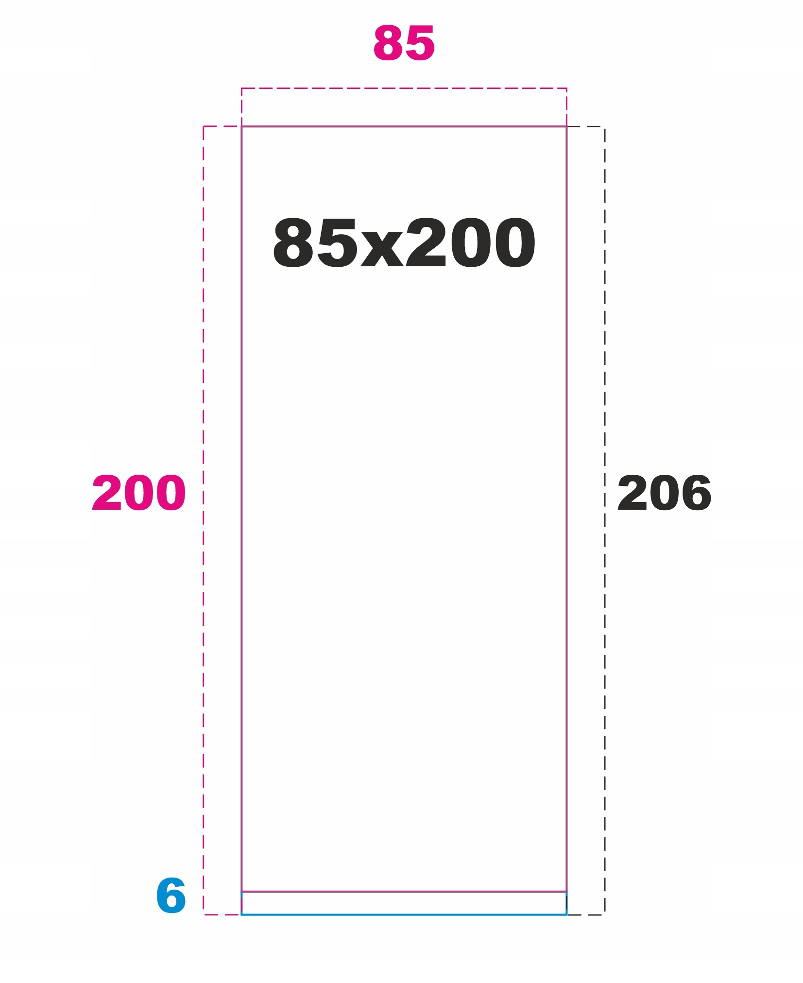 85x200 – нетто: 85x200 см, брутто: 85x206 см