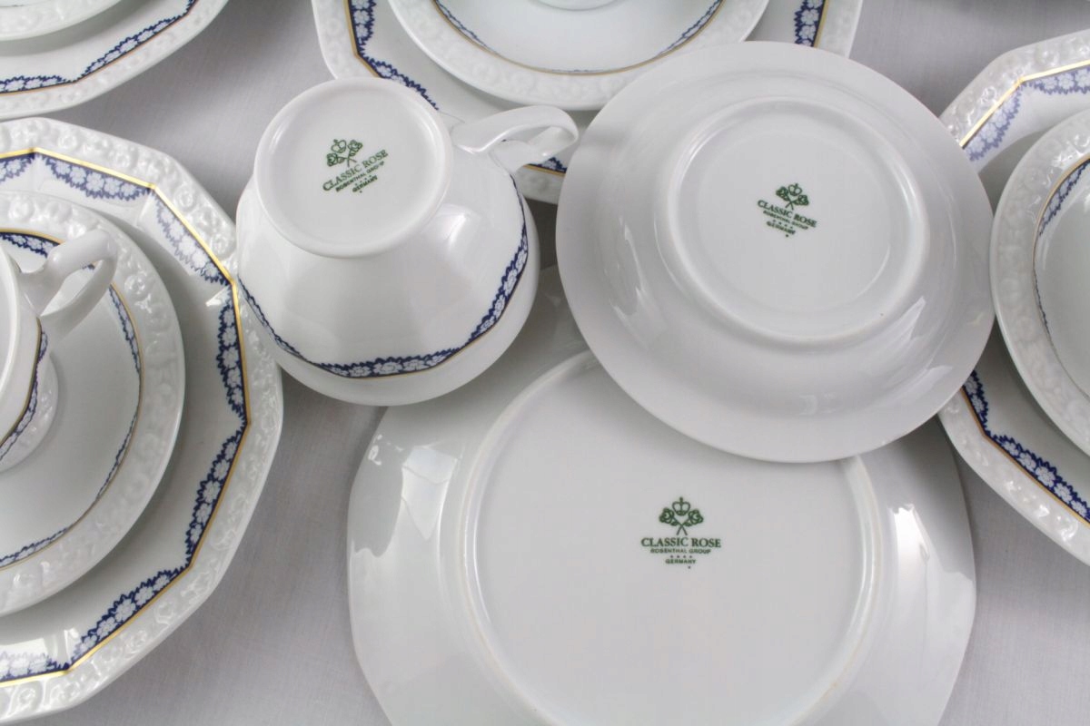 Красивый белый фарфор, декор из кобальта и золота, добавляющий элегантности.