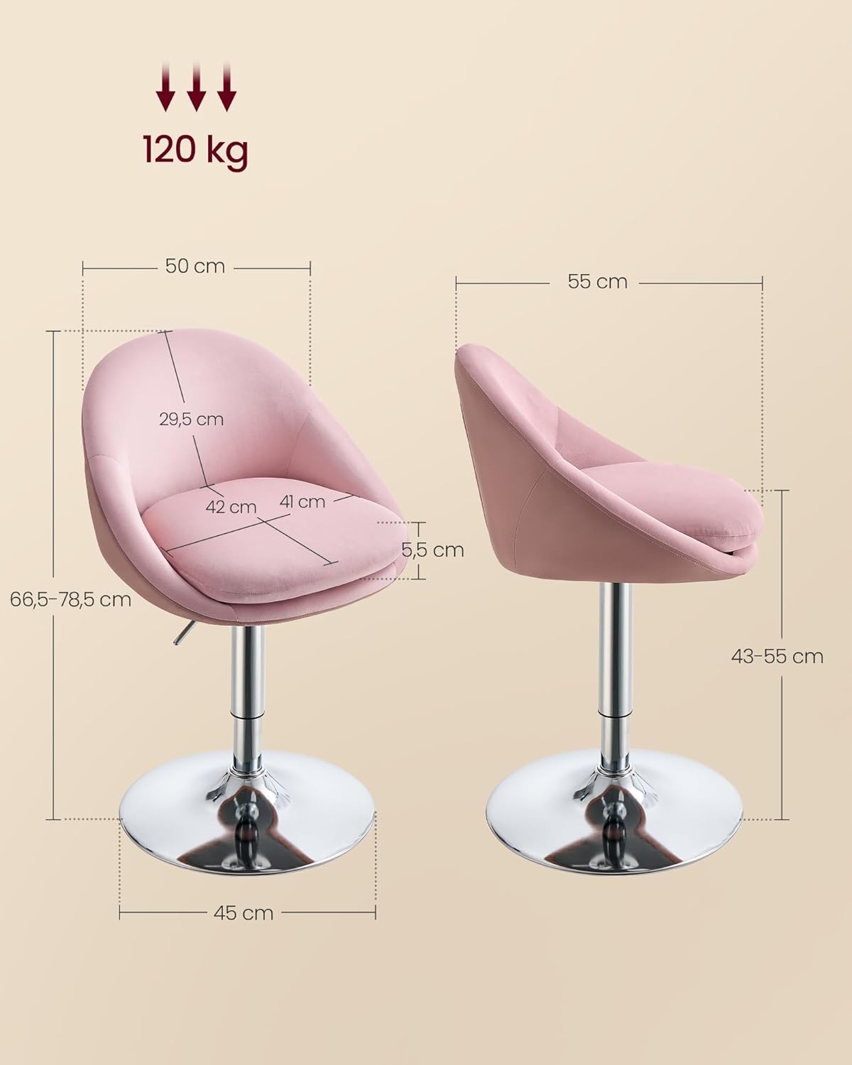 Ротариовый табурет Высокий розовый хокер, регулируемый на стойке кухни спальни h1>