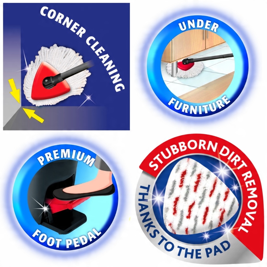 На 40 % эффективнее в борьбе с загрязнениями: Дизайн, состоящий из двух частей, сочетает в себе технологию лучшей плоской швабры с лучшей струнной шваброй, что обеспечивает еще лучшие результаты уборки.