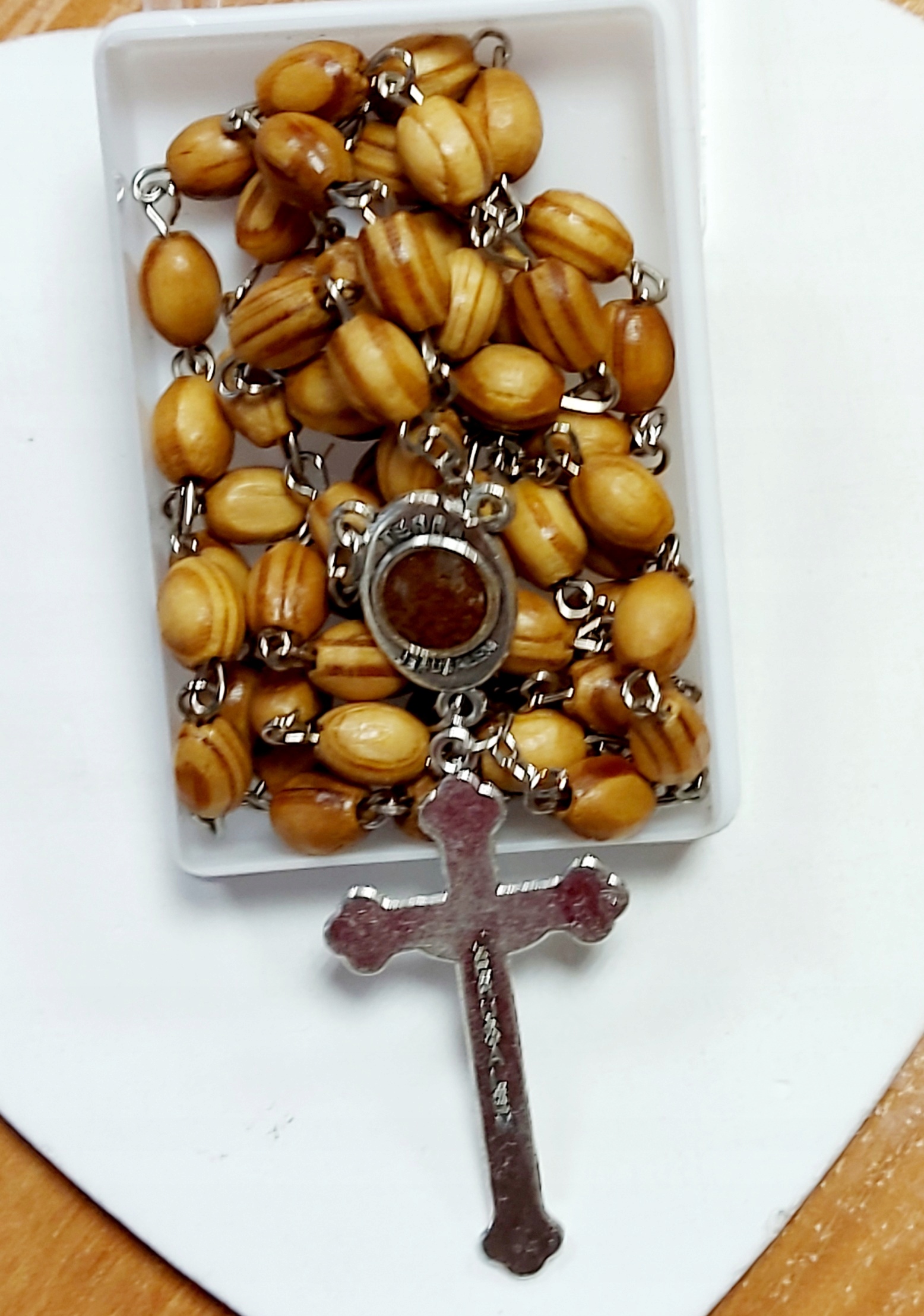 РОЗАРІЙ Ми виготовляємо його з *Оливкового дерева* з землею зі Святої Землі