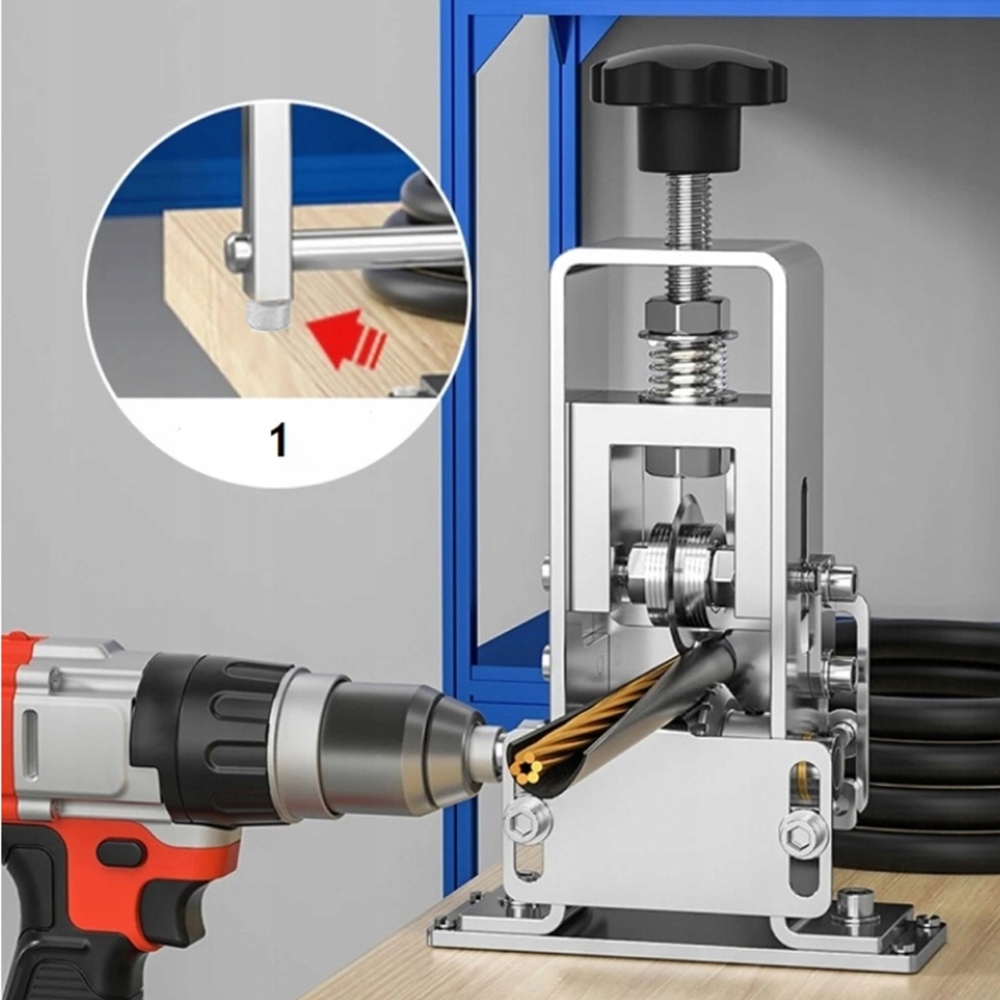 ✔️ Простота управления и возможность автоматизации: Оснащен рукоятка, позволяющая снимать изоляцию вручную, а также легко подсоединить отвертку для автоматизированной работы.