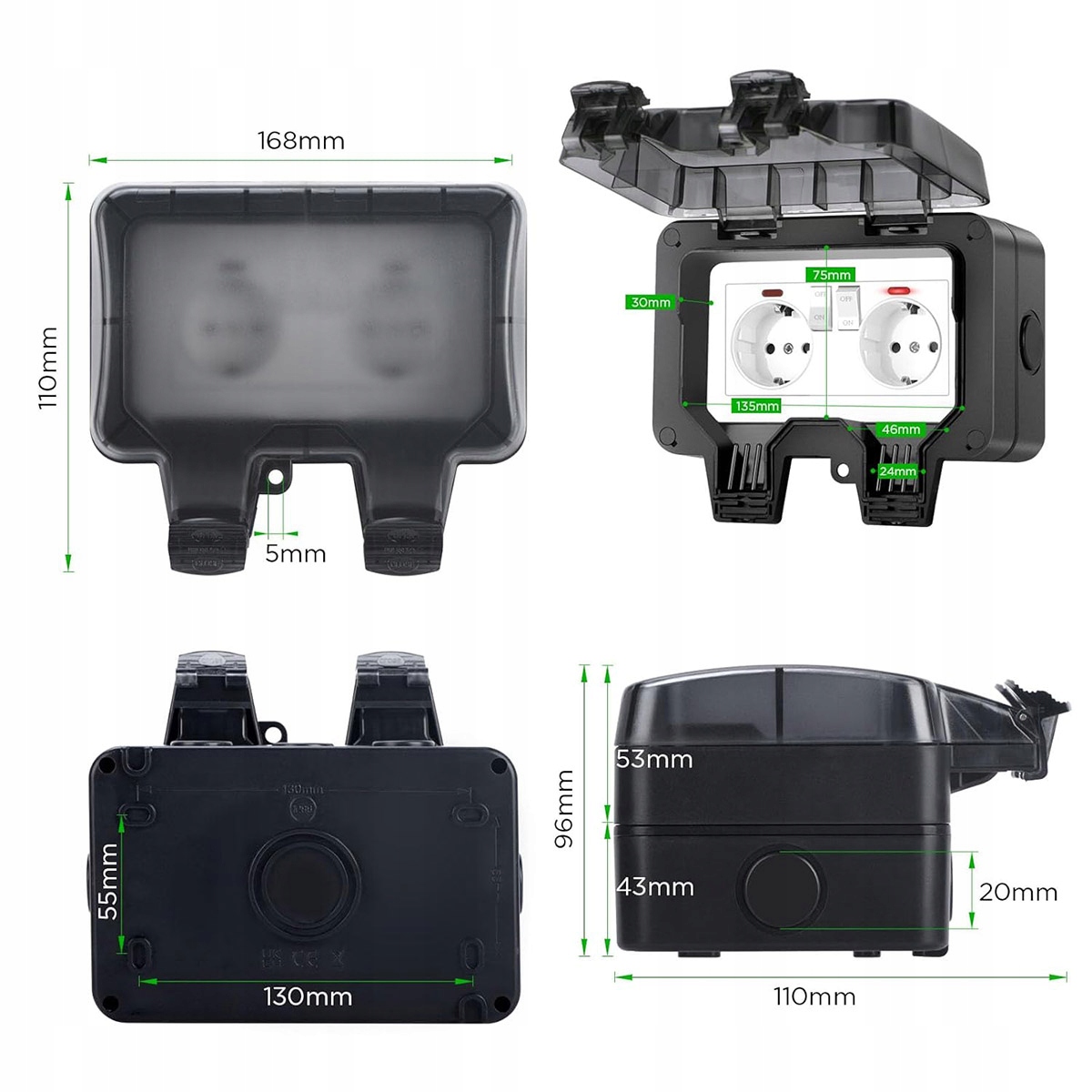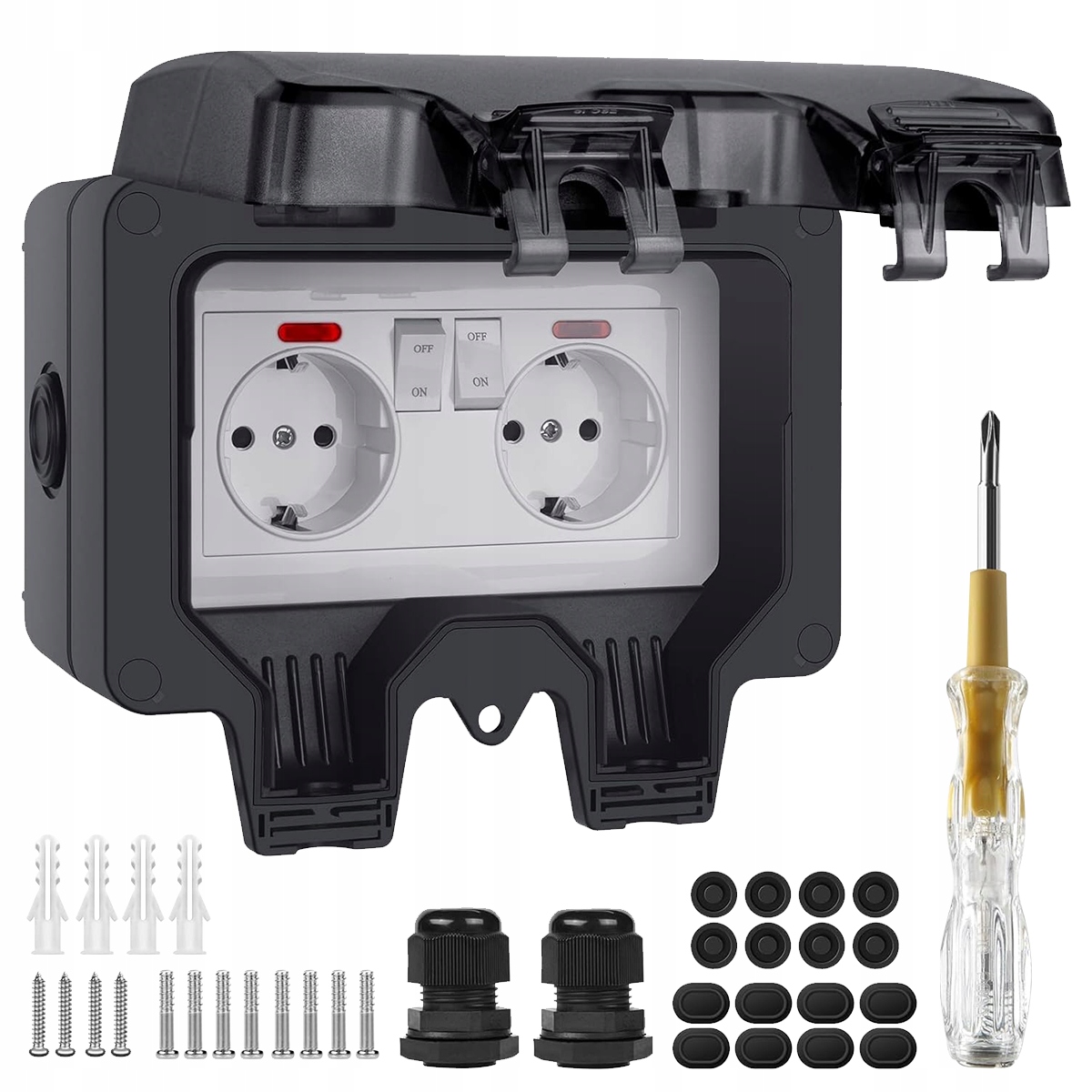 - -Простота в использовании: откройте коробку с розеткой, вставьте кабель в разъем, а затем в розетку. . Максимальное сечение кабеля на кабельном вводе составляет 2,5 мм².
