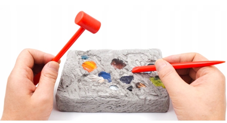 1 . Подготовьте инструменты раскопок и археологические аксессуары. Перед началом раскопок мы рекомендуем уложить карту или небольшой контейнер под гипсовым блоком, чтобы предотвратить гипсовый порошок для предотвращения раскопок.
