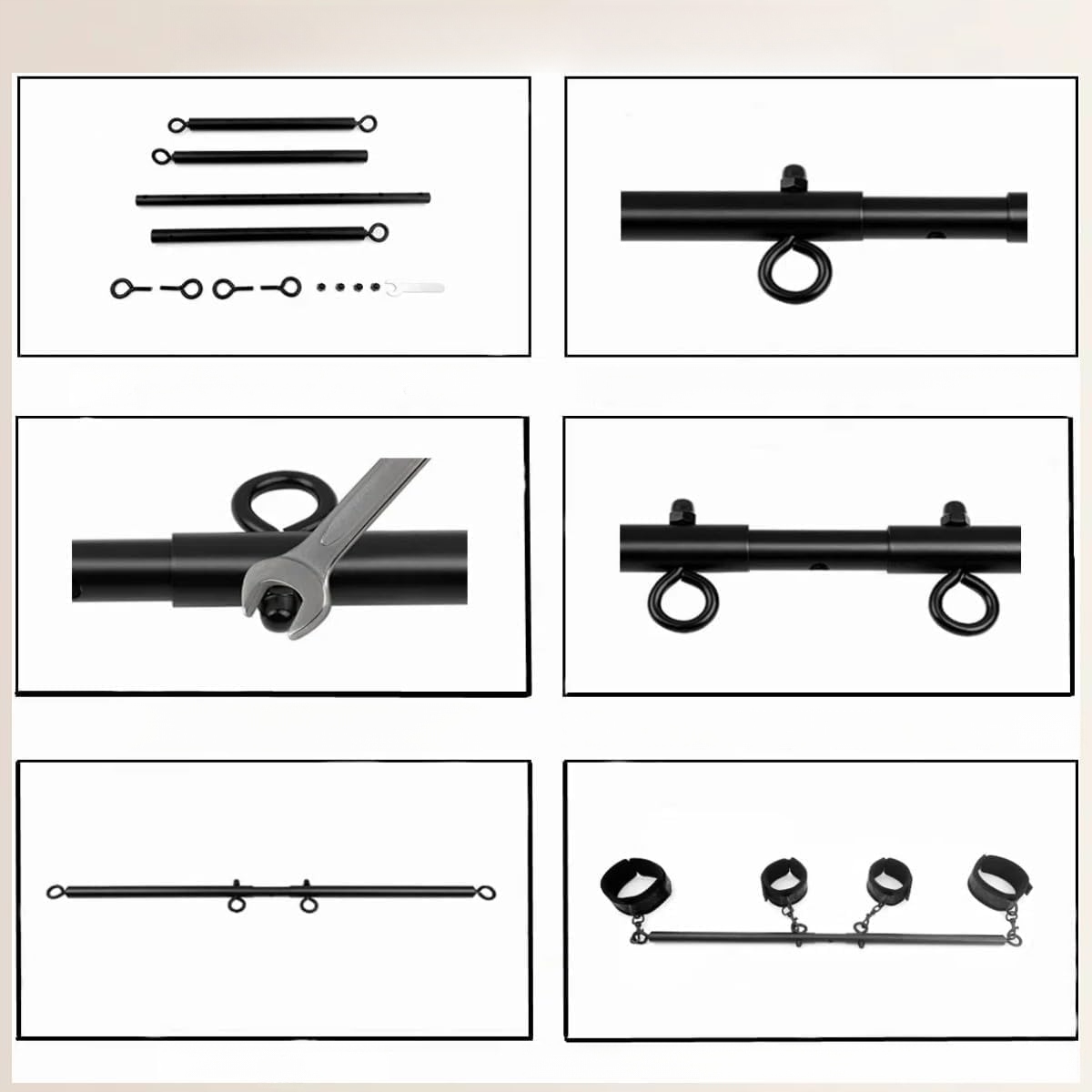 , разработанный для пар и частных лиц, этот набор можно использовать для широкого спектра рабовладельческих мероприятий. Регулируемый стержень разбрасывателя позволяет создавать идеальный уровень ограничения и комфорта. Независимо от того, изучаете ли вы легкое веселье или участвуете в более интенсивных сессиях, этот набор гарантирует универсальность, которая вам нужна.
