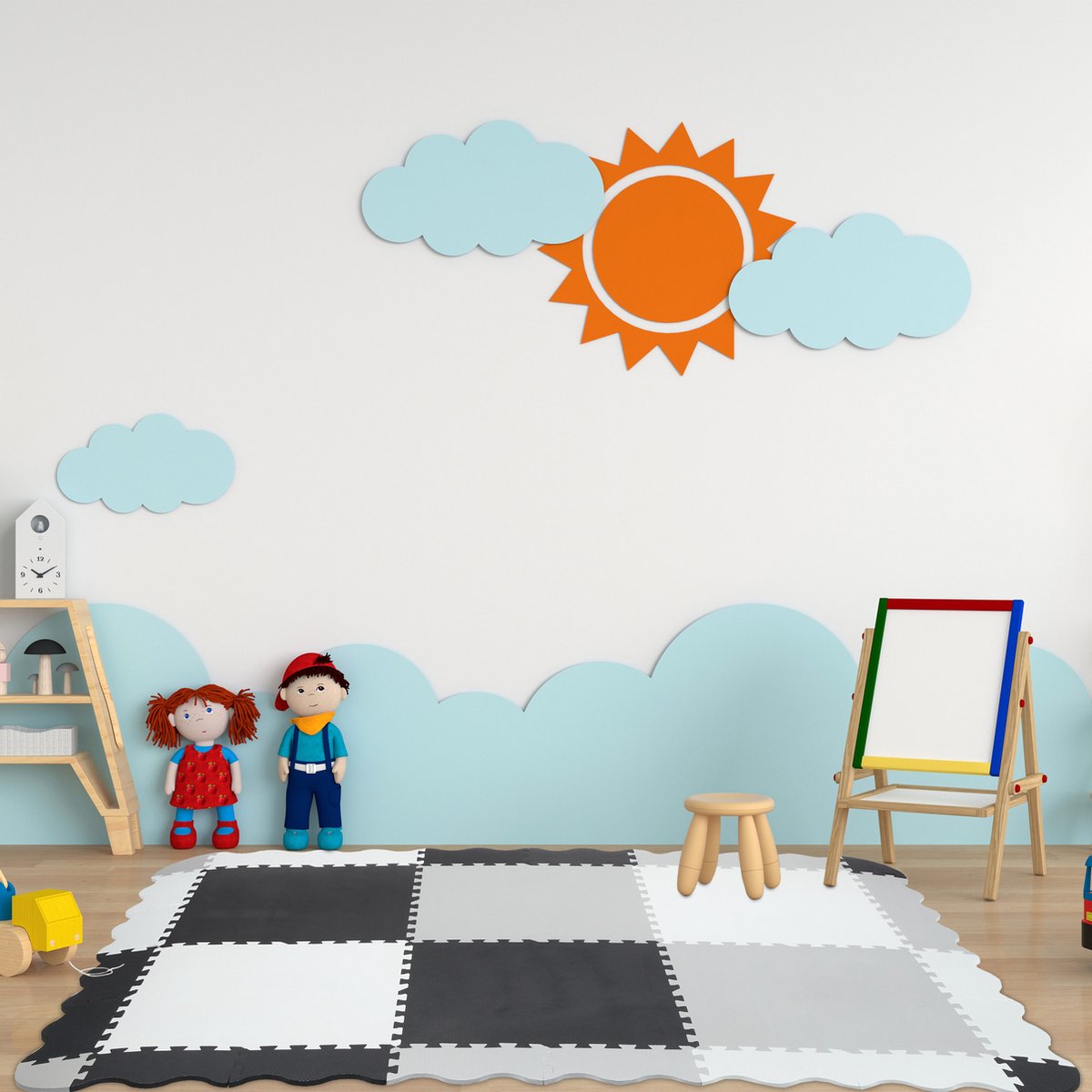 Вашим детям наверняка понравится этот мягкий коврик-пазл. Коврик-пазл состоит из 30 отдельных ковриков из пенопласта ЭВА, которые можно комбинировать различными способами. Легкий в уходе детский коврик обладает амортизирующим эффектом и изолирует тепло, поэтому дети могут играть на полу, не теряя при этом ног. Игровой коврик также имеет края, которые можно расположить вертикально, чтобы можно было играть в определенной зоне.
