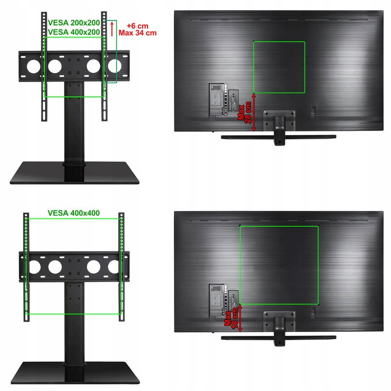 - VESA 100x100 ~ 400x400 мм (все комбинации отверстий, включая отделение)