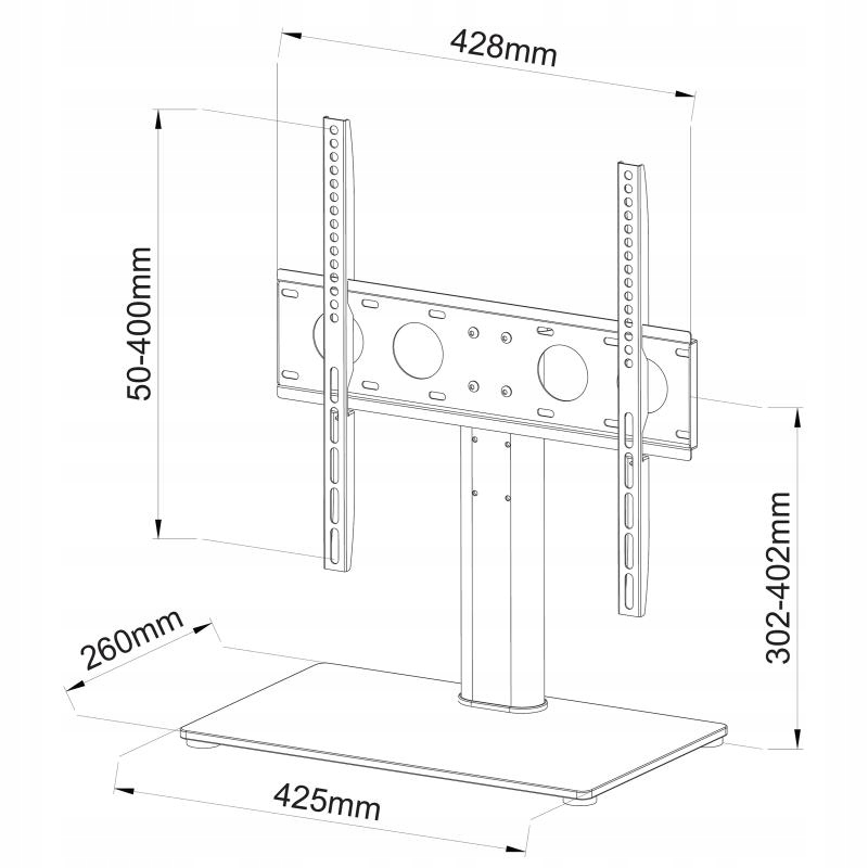 - Регулировка высокого высокого уровня: 302 ~ 402 мм (центр альбома Vesa)