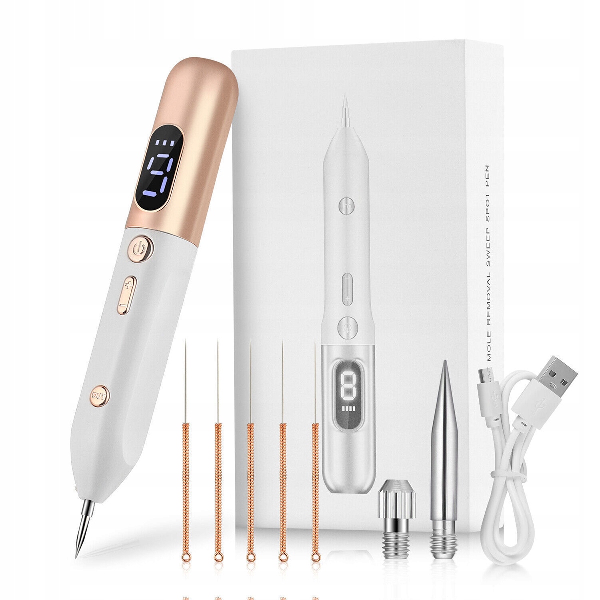 ручка для удаления ЖК-моль-плазматической ручки для удаления бородавок для удаления перца с 9-градусным управлением скоростью и светодиодным светом, загруженный USB 1200 мАч (золото шампанского и белое)