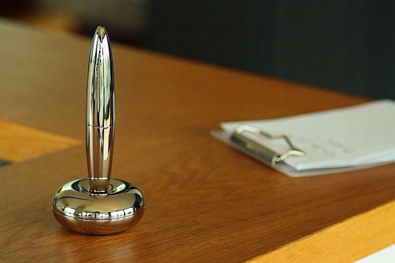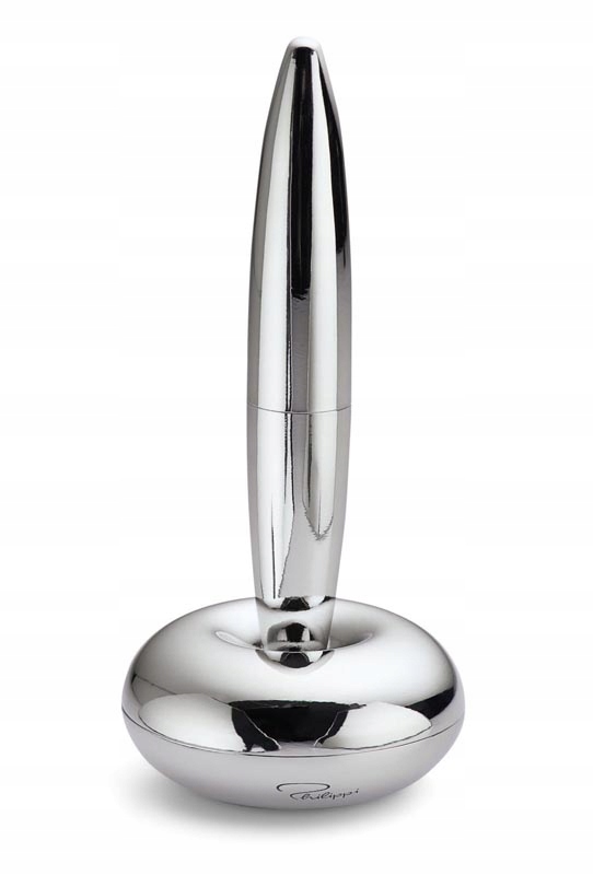 изготовлен из гладкого, полированного никеля и оборудован магнитной стендом , которая держит его в вертикальном положении. Кроме того, после вставки ручки она аккуратно балансирует .