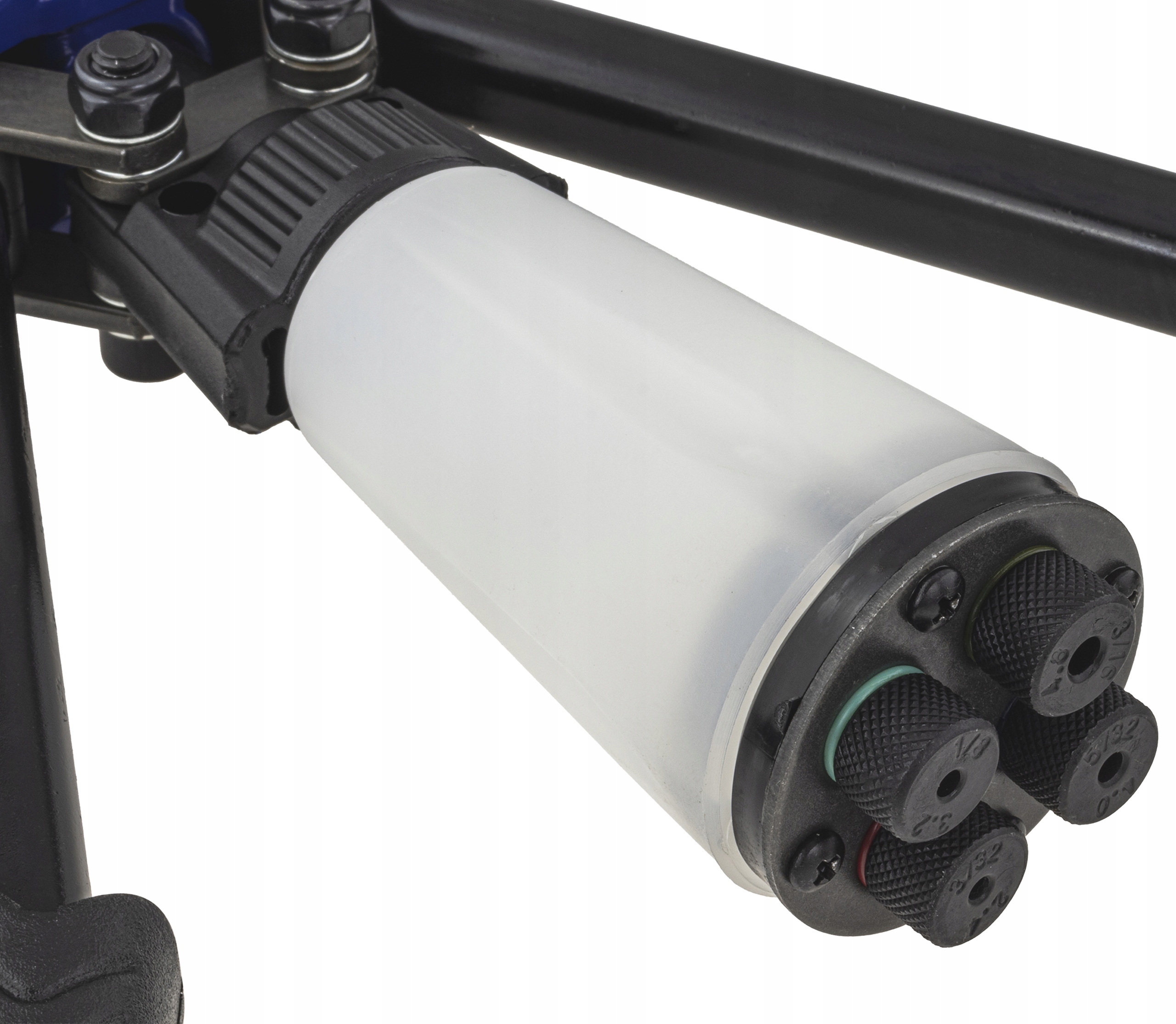 Позволяет использовать заклепки размеров: 2,4, 3,2, 4,0, 4,8 и 6,4 ммс использованием пяти сменных переходников.