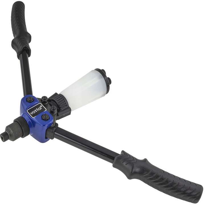 Идеально подходит для использования в автомастерских, механических и слесарных мастерских. Контейнер для сломанных концов заклепок. Прорезиненные ручки и длинные дужки, а также отличный баланс инструмента улучшают его эргономику.