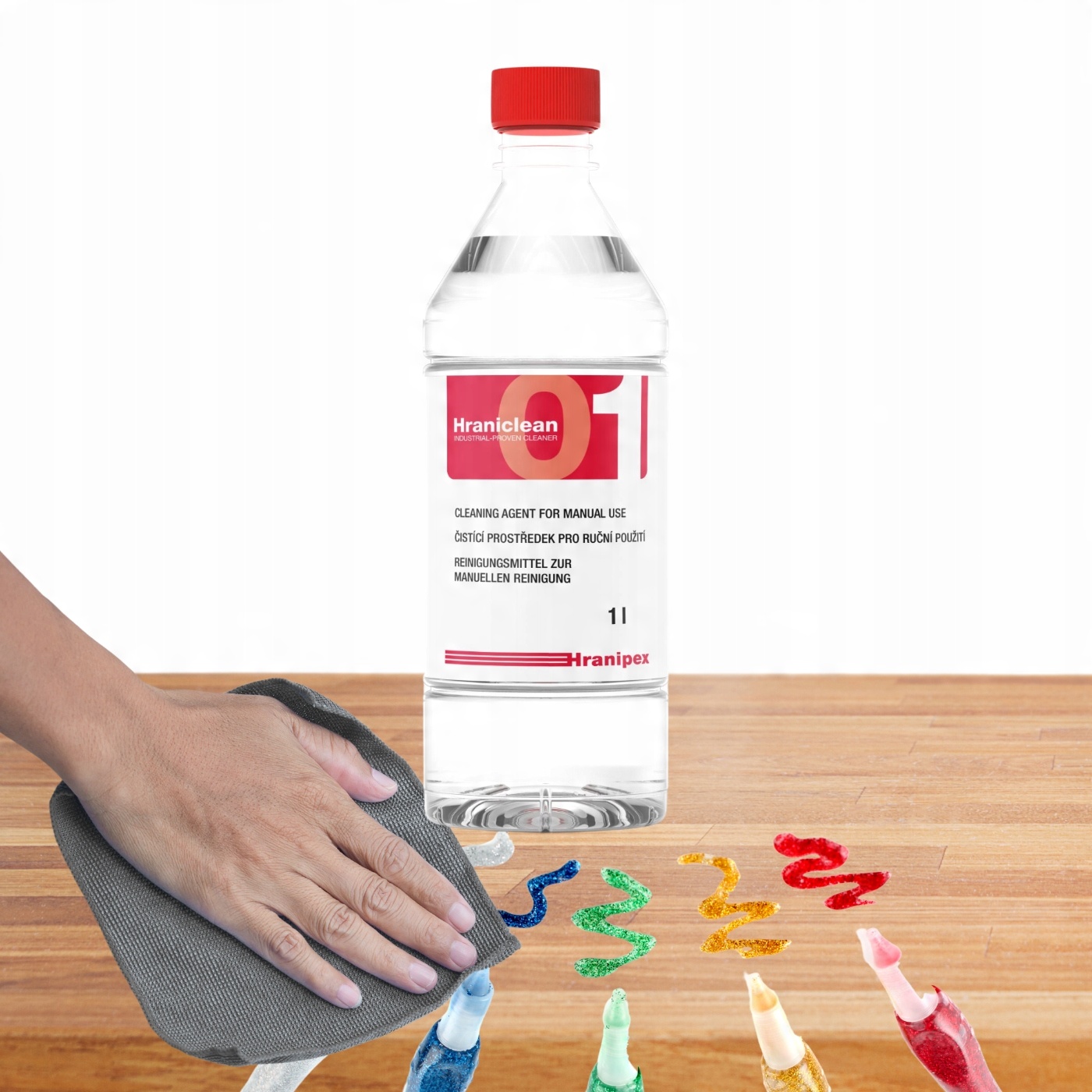 Специальный чистящий агент Hraniclean 01 без агрессивных растворителей, для ручной очистки мебельных пластин, характеризуется высокой очисткой, быстрой сушкой поверхности. Он основан на углеводоронах и алкоголе, испаряется без каких -либо остатков и имеет приятный цитрусовый аромат. Тест перед использованием.