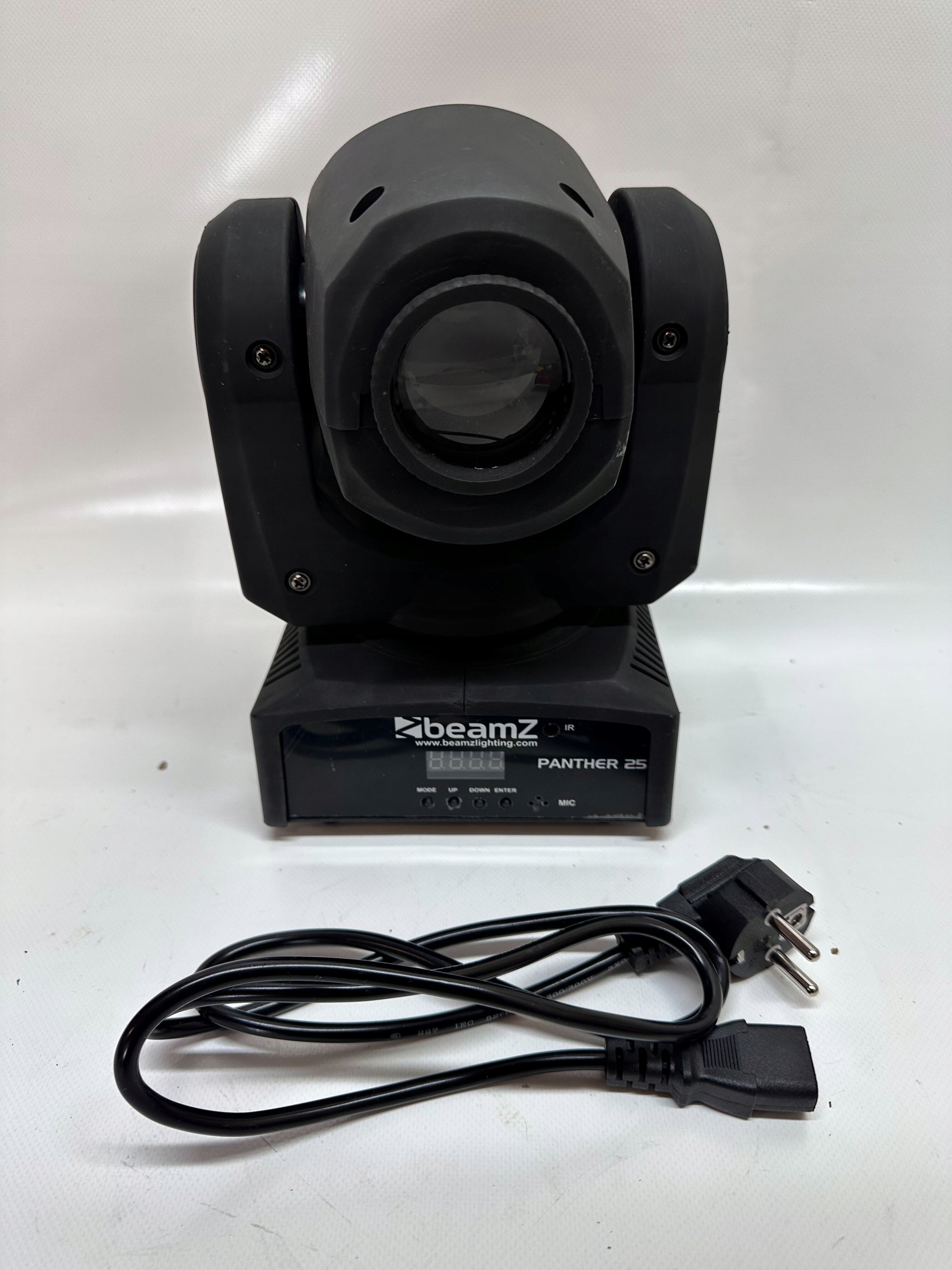Компактная движущаяся головка Panther 25 светодиод Beamz имеет очень яркий, 13 ° луча света. Он оснащен двумя дисками с узорами гобо и цветами, которые можно использовать свободно - 7 Gobo Design и 7 цветов доступны. Эта головка может контролироваться с использованием DMX (3 канала), прикрепленного пульта дистанционного управления или в автономной модели.