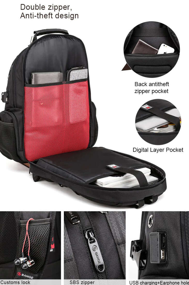 Рюкзак Bange для ноутбука 17,3 дюйма BG-1905, очень вместительный, USB-порт