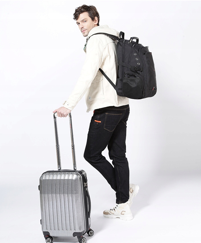 Супервместительный рюкзак для ноутбука размером до 17,3 от Bange. Очень хорошо сделанный и хорошо продуманный рюкзак для ноутбука из водонепроницаемого материала. Он имеет отлично организованные карманы и отделения, куда можно поместить все необходимые вещи в зависимости от ситуации. В него можно упаковать одежду для 6-дневной поездки или 10 книг и ноутбук размером до 17,3. Рюкзак имеет два отделения и множество карманов. Отделение сзади предназначено для мультимедиа и открывается как чемодан, поэтому у вас есть легкий доступ ко всему его содержимому. Переднее отделение просторное, поэтому в него можно поместить много вещей. В передней части рюкзака расположены три кармана для полезных вещей и большой карман с отделениями для мелочей. По бокам рюкзака расположены просторные карманы на молнии с наружными карманами на резинке для напитка или зонтика. Рюкзак дополнительно оснащен внешним разъемом USB, поэтому вам не придется вынимать из рюкзака павербанк для зарядки телефона или другого портативного устройства, разъем miniUSB , благодаря которому вы можете заряжать аккумулятор, спрятанный внутри рюкзака, и разъем для внешних наушников, благодаря которому вы можете слушать музыку, не вынимая плеер из рюкзака. Задняя часть рюкзака облицована толстым поролоном эргономичной формы, благодаря чему содержимое рюкзака очень хорошо защищено от ударов, а рюкзак удобно лежит на спине. Здесь также имеется прочный ремень, благодаря которому можно устойчиво разместить рюкзак на ручке полетной сумки, и небольшой карман для кошелька или телефона, который защитит ваши самые ценные вещи от кражи. лямки рюкзака изготовлены из твердого и отделаны мягкими губками, благодаря чему рюкзак удобно сидит на плечах. На одном плечевом ремне имеется карман для наушников, на другом — для очков. Кроме того, рюкзак имеет очень прочную ручку, усиленную металлическим тросом и специальным резиновым протектором, благодаря чему тяжелый рюкзак можно удобно носить в руках, не опасаясь за ручка отламывается.