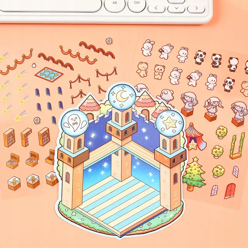 S3D79 3D DIY наклейки с Tiktok Roombox Set 4 пакета сказка сказка замок молнии на молнии