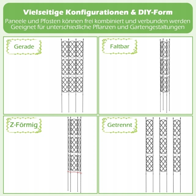 ✅ Легкая установка: просто прикрепите вертикальные опоры, прикрепите панели к лозе, а затем поместите нижние дюбели на землю. Для лучшей стабильности рекомендуется помещать в землю на 15-25 см для лучшей стабильности.