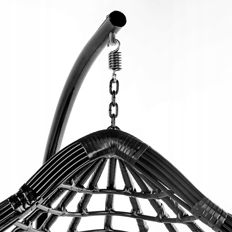 Большое черное висящее кресло, сделанное из высококачественного ротанга (плетеное имитация), обеспечит вам превосходный комфорт и расслабление дома, на террасе или в саду. Кресло имеет сплошное металлическое сиденье, завернутое в плетение, которое увеличивает его прочность, стабилизацию и дает интересный дизайн. Модель стула Velaco В виде так называемого кокона уникальна из -за современного и элегантного внешнего вида, круглого, стабильного основания и стальной рамы, покрытого порошкой. Пластик, из которого изготовлено кресло, устойчив к погодным условиям. Большая круглая база обеспечивает максимальную стабильность, а вес всего набора составляет около 40 кг.