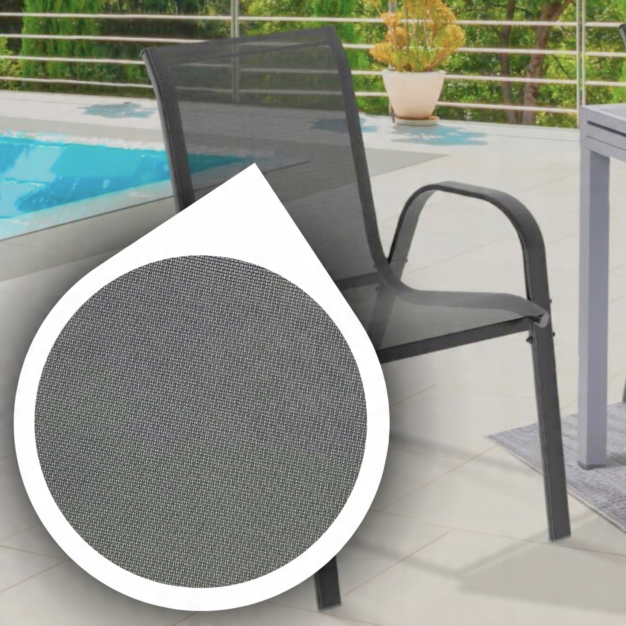 Садовое кресло — идеальный компаньон для наслаждения солнечными днями, обеспечивающее долговечность стали в сочетании с комфортом текстильного материала, что гарантирует долгий срок службы. -срок использования. Элегантный стальной серый цвет и возможность штабелирования делают его не только практичным выбором для любого сада или террасы, но и стильным дополнением. Кресло отличается прочной конструкцией, выдерживающей максимальный вес до 110 кг, что позволяет комфортно использовать его широкому кругу людей, а дополнительный комфорт обеспечивают подлокотники, идеальные для длительного, неторопливые ужины за столом на свежем воздухе.