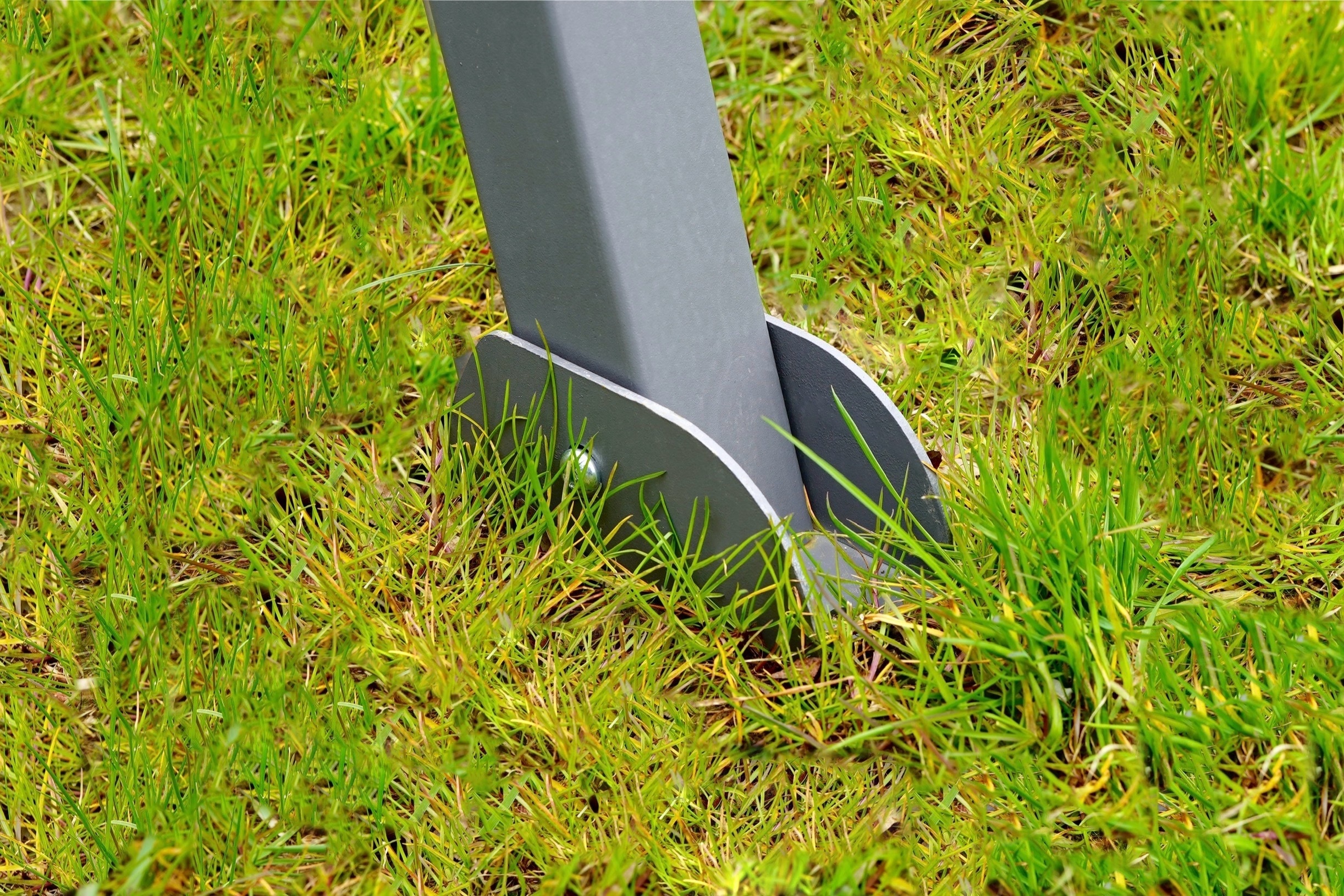 Каждая ножка имеет одно отверстие, позволяющее прикрепить раму к земле.